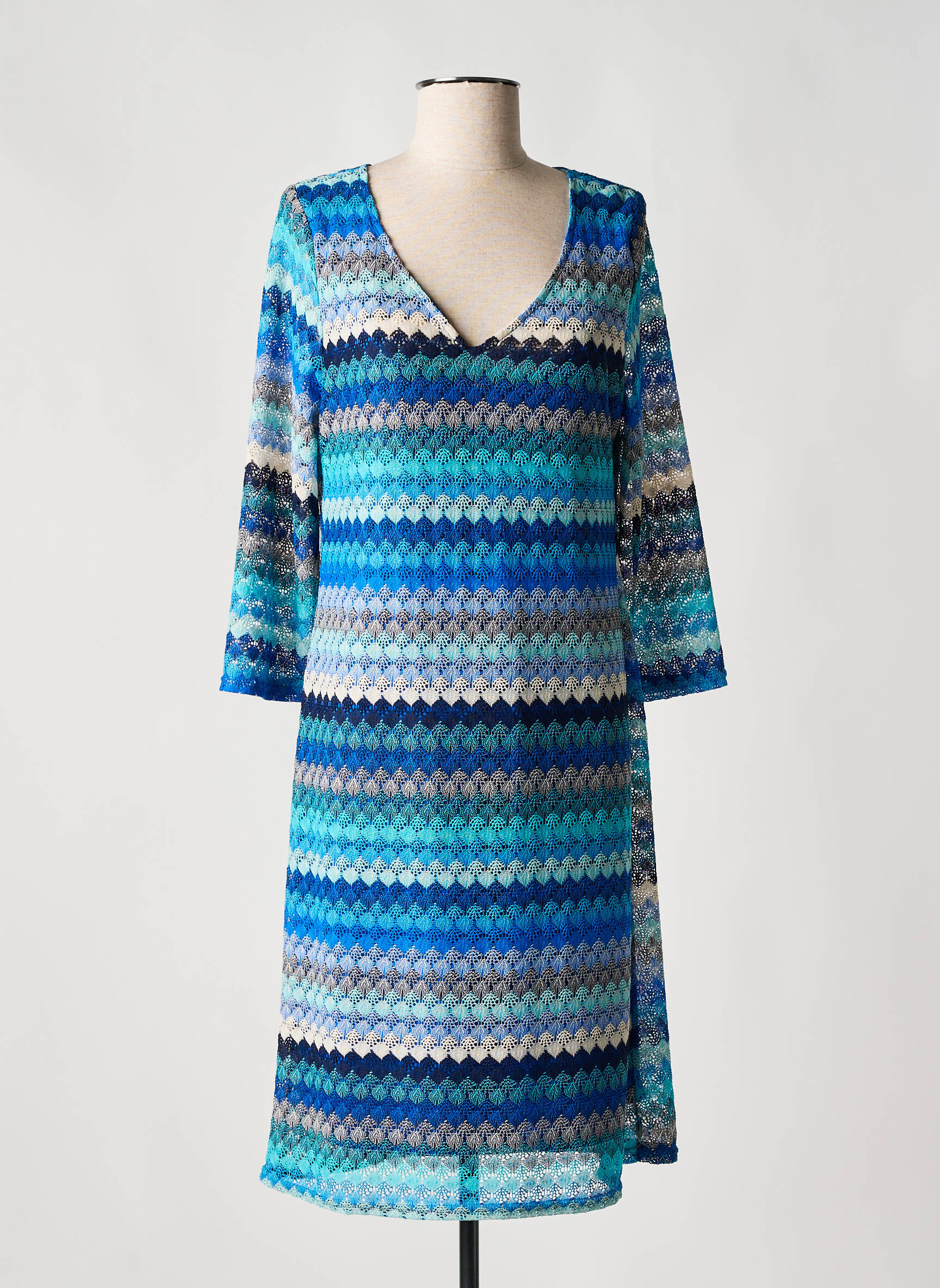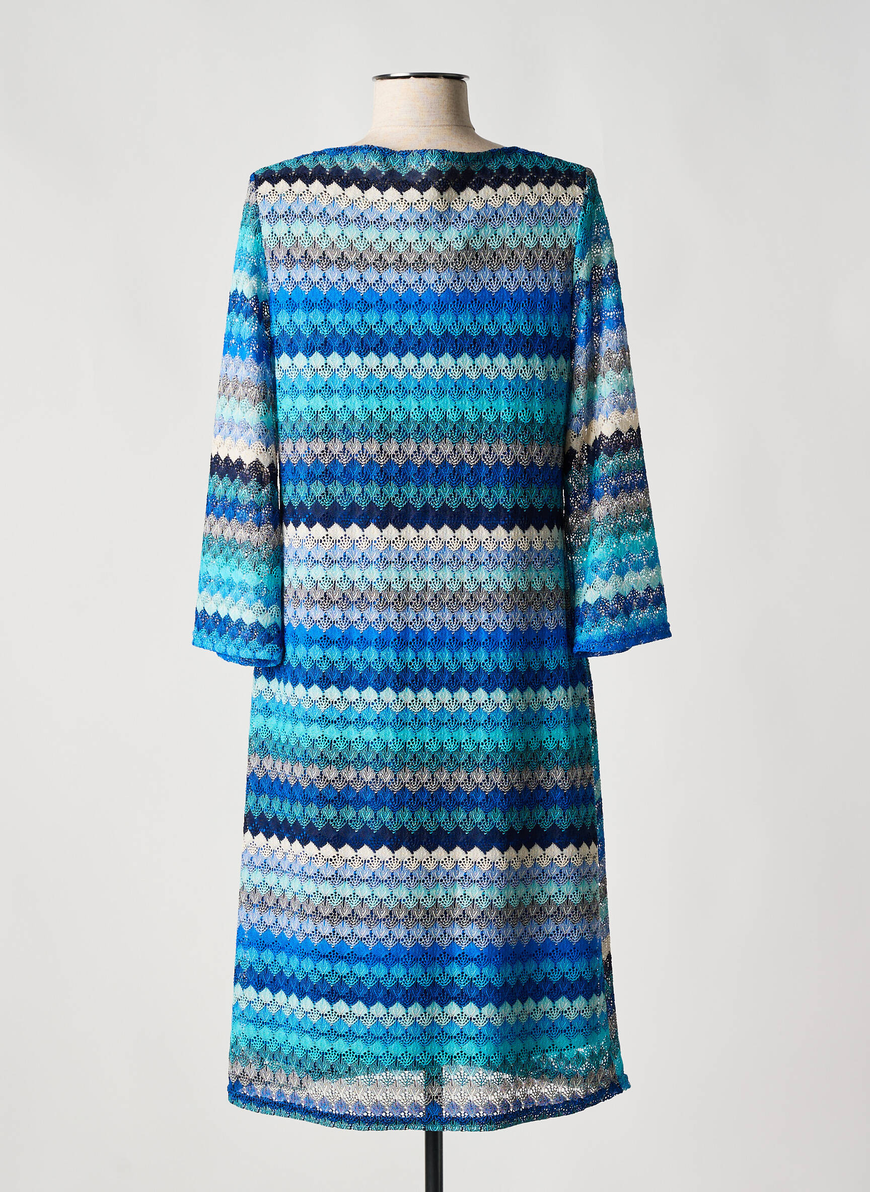 Rochie Pulover Halogene Albastru Mâneci Lungi