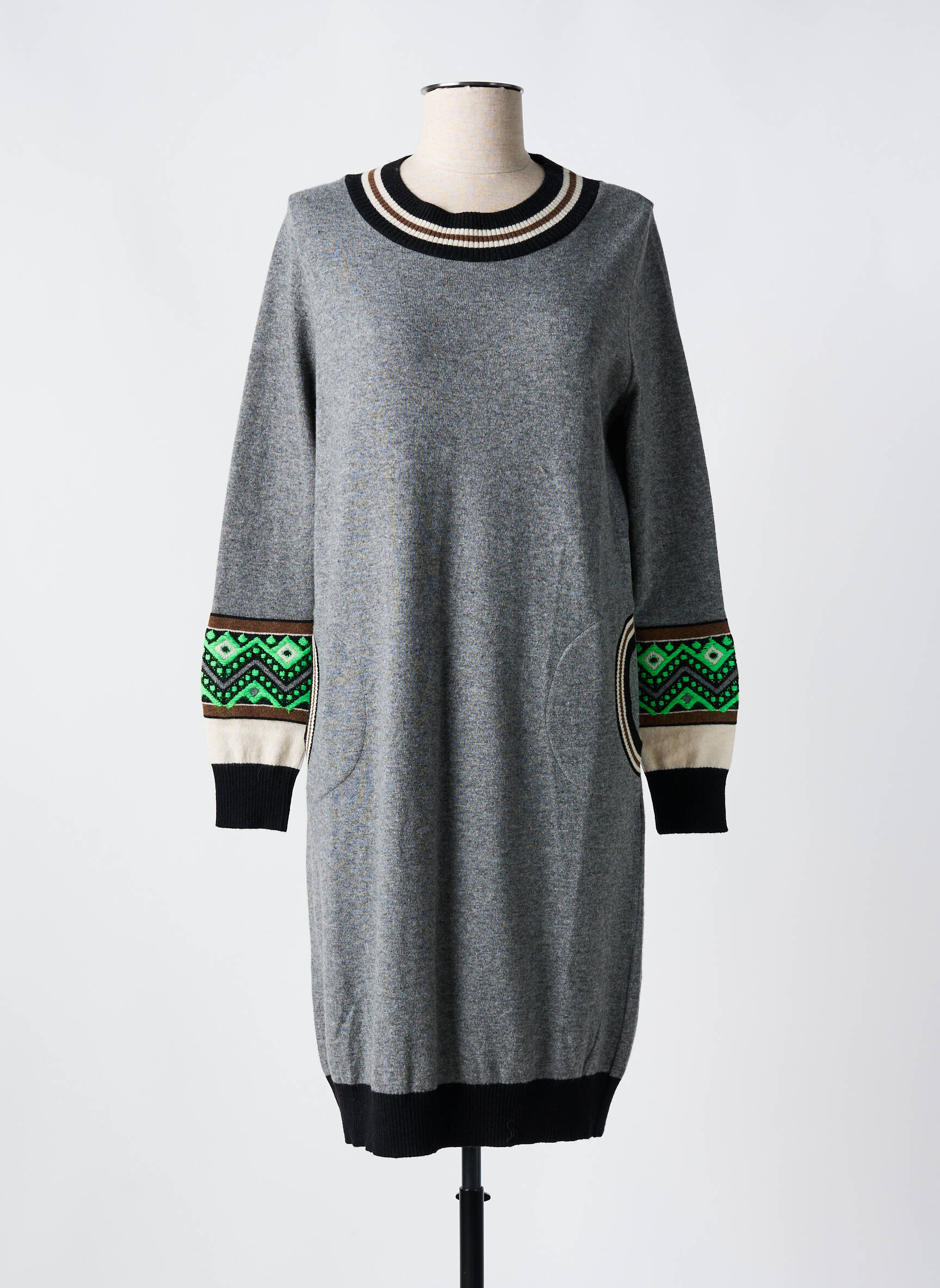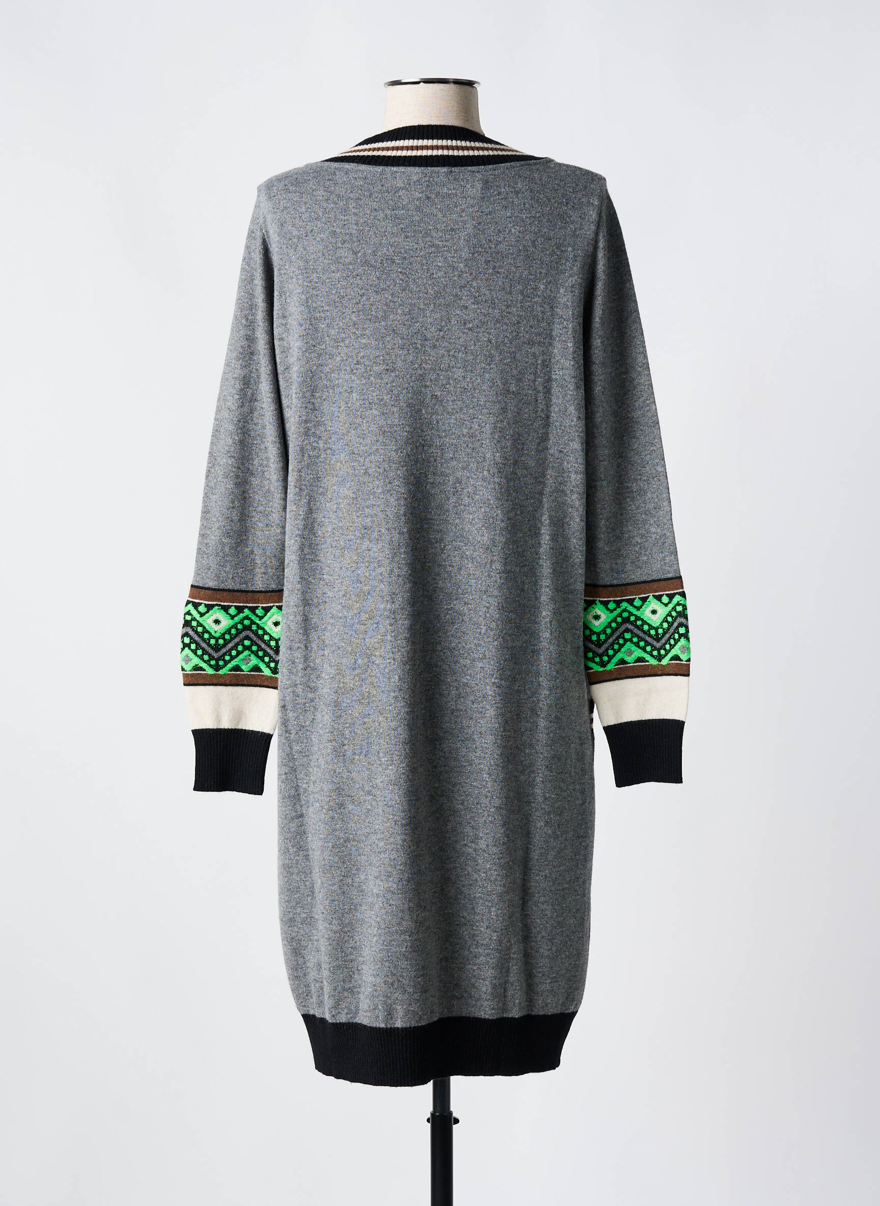 Rochie Pulover Tricot Chic Gri Mâneci Lungi