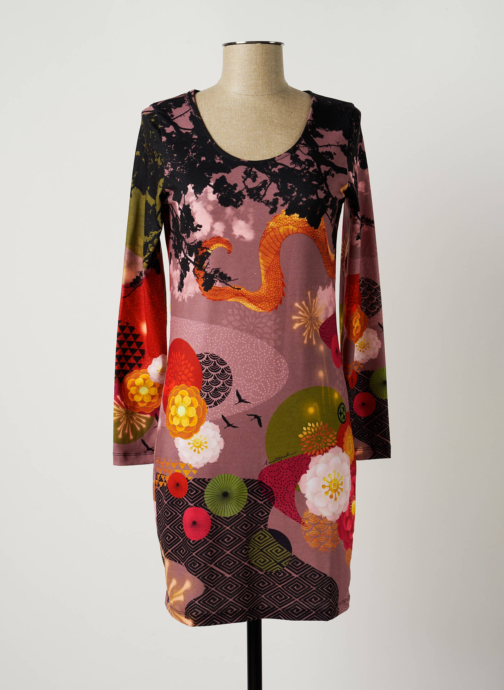 Rochie Scurtă Anatopik Roz Mâneci Lungi