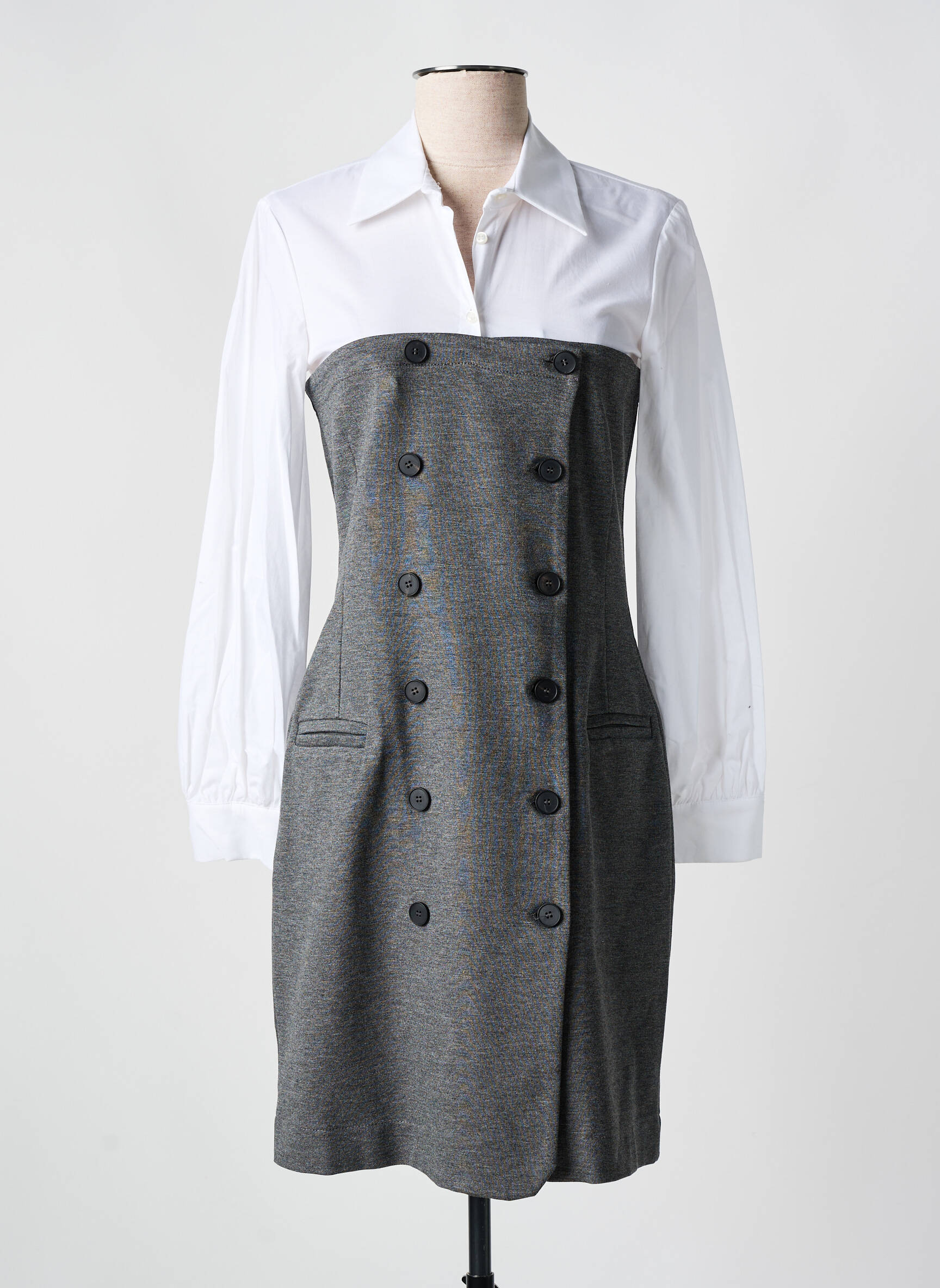 Rochie Scurtă Angela Davis Gri Mâneci Lungi