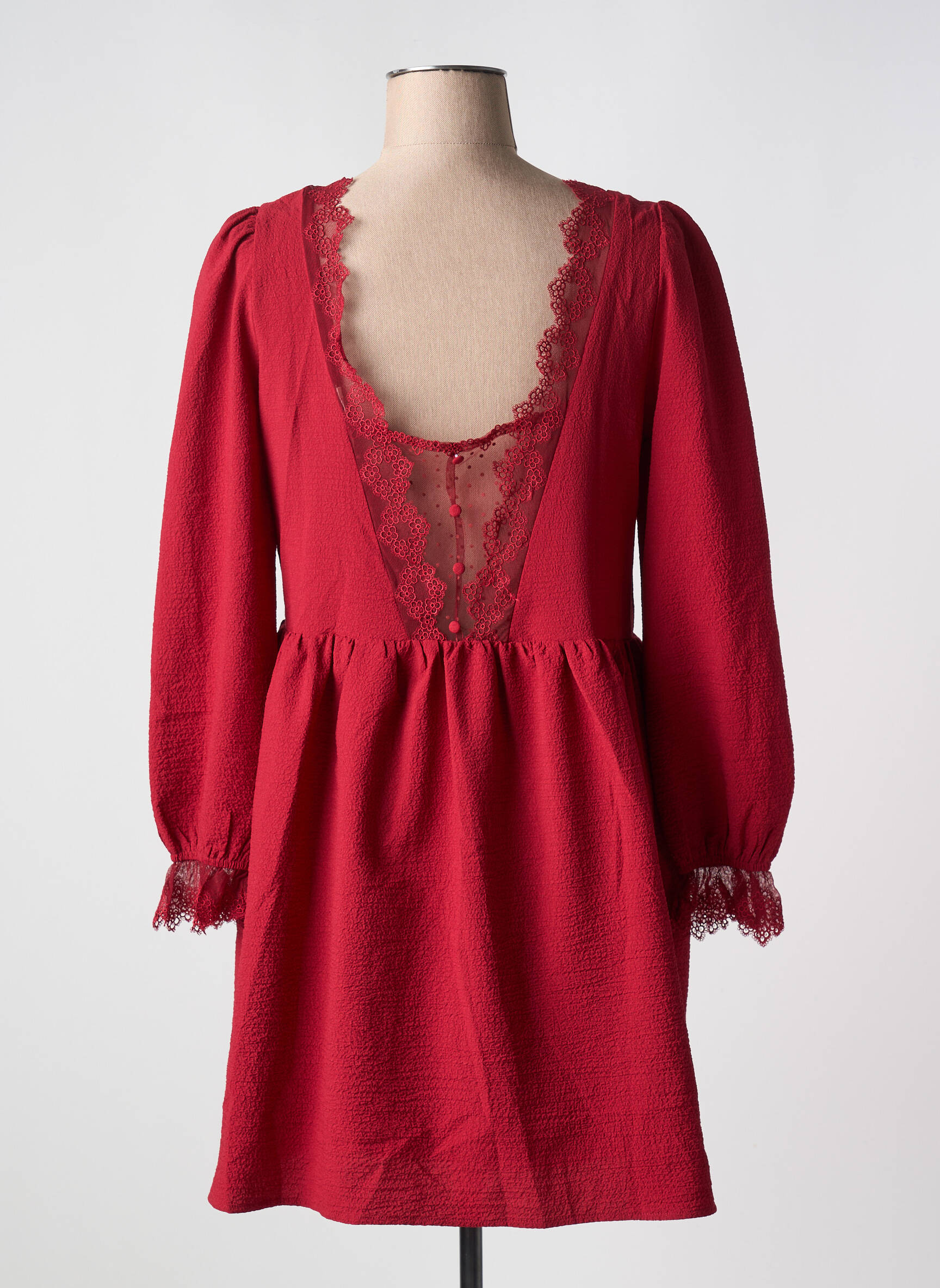Rochie Scurtă Cherry Paris Roșu Mâneci Lungi