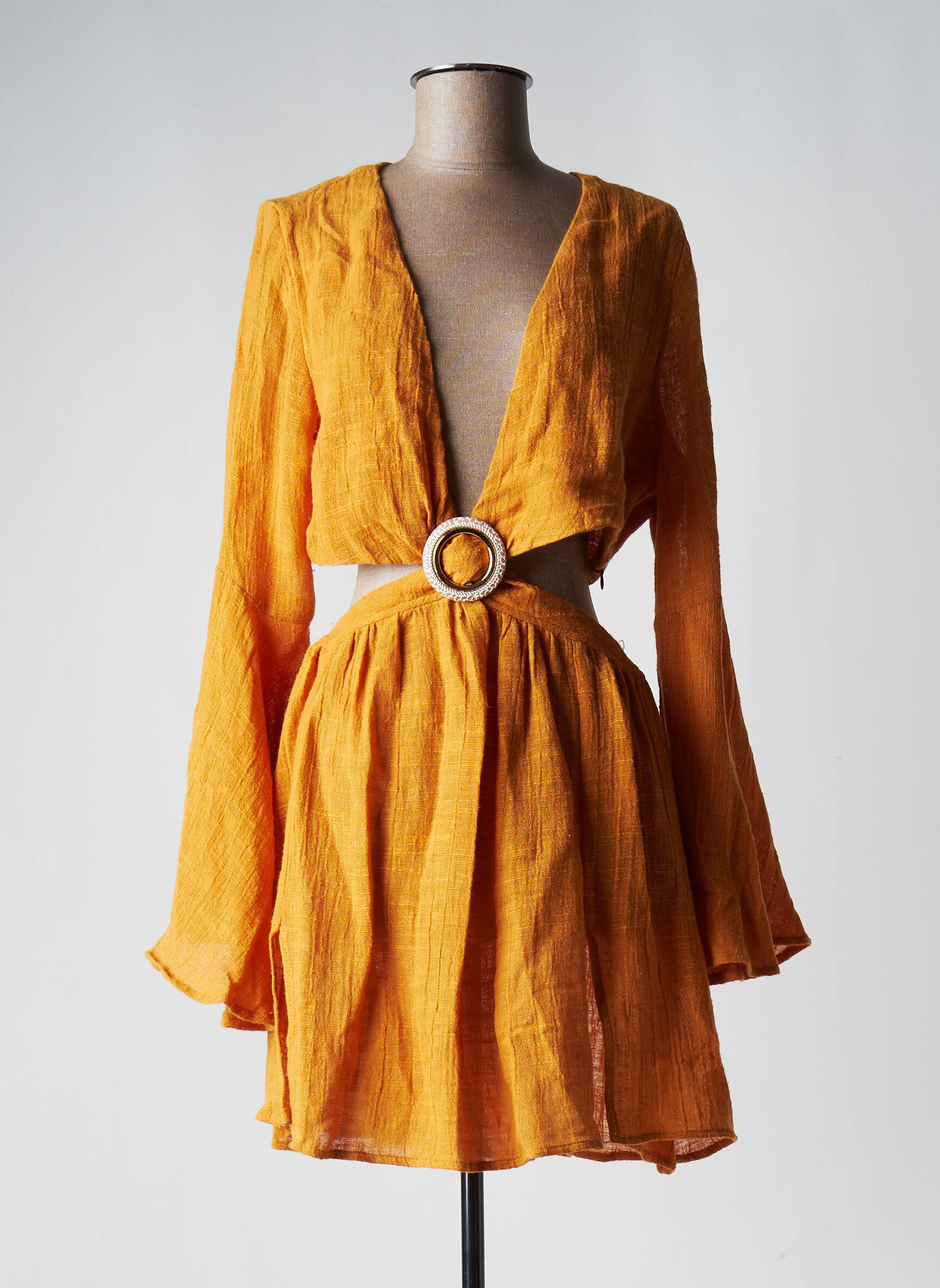 Rochie Scurtă Christelle Nima Galben Mâneci Lungi