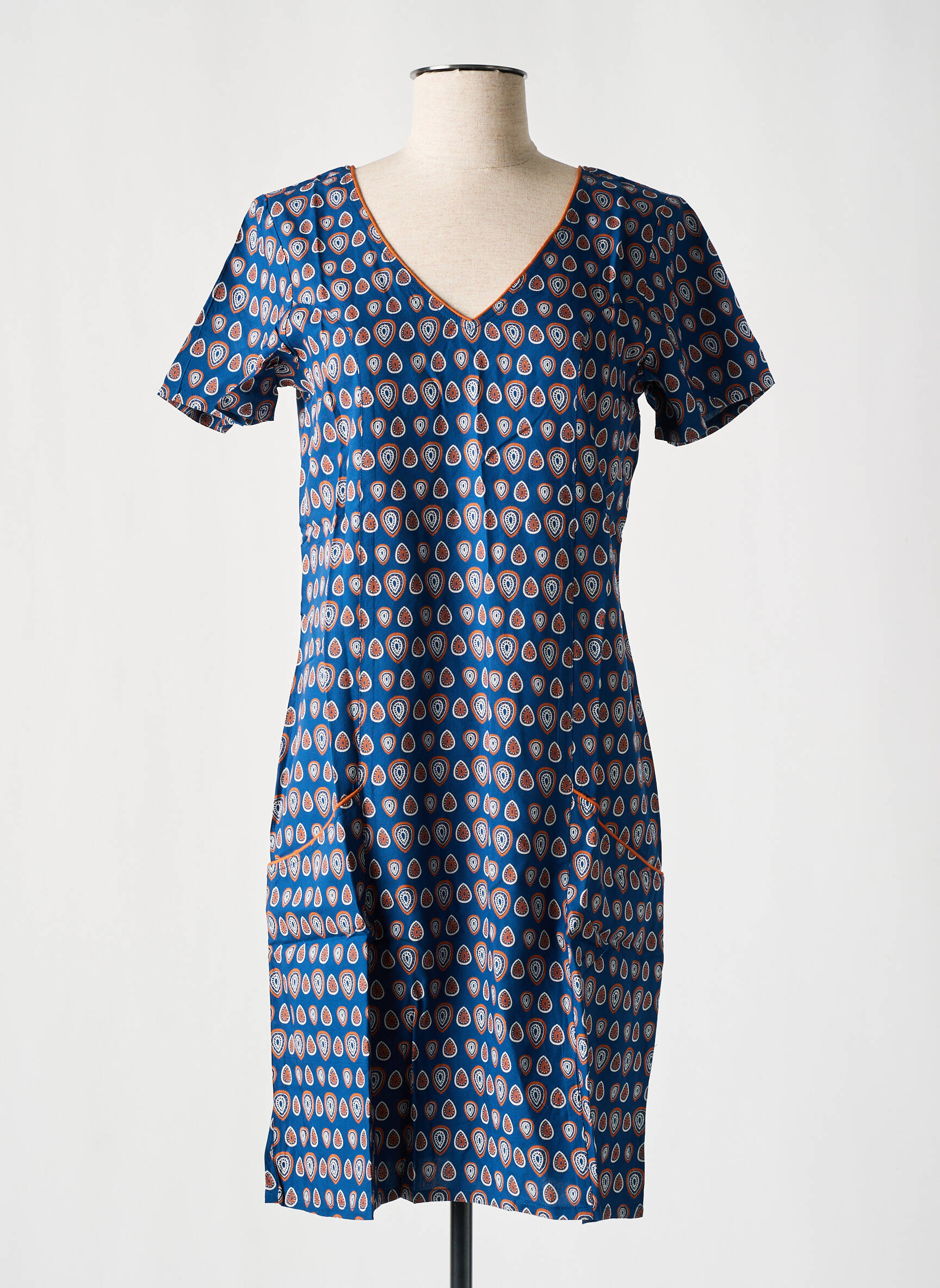 Rochie Scurtă Coton Du Monde Albastru Mâneci Scurte
