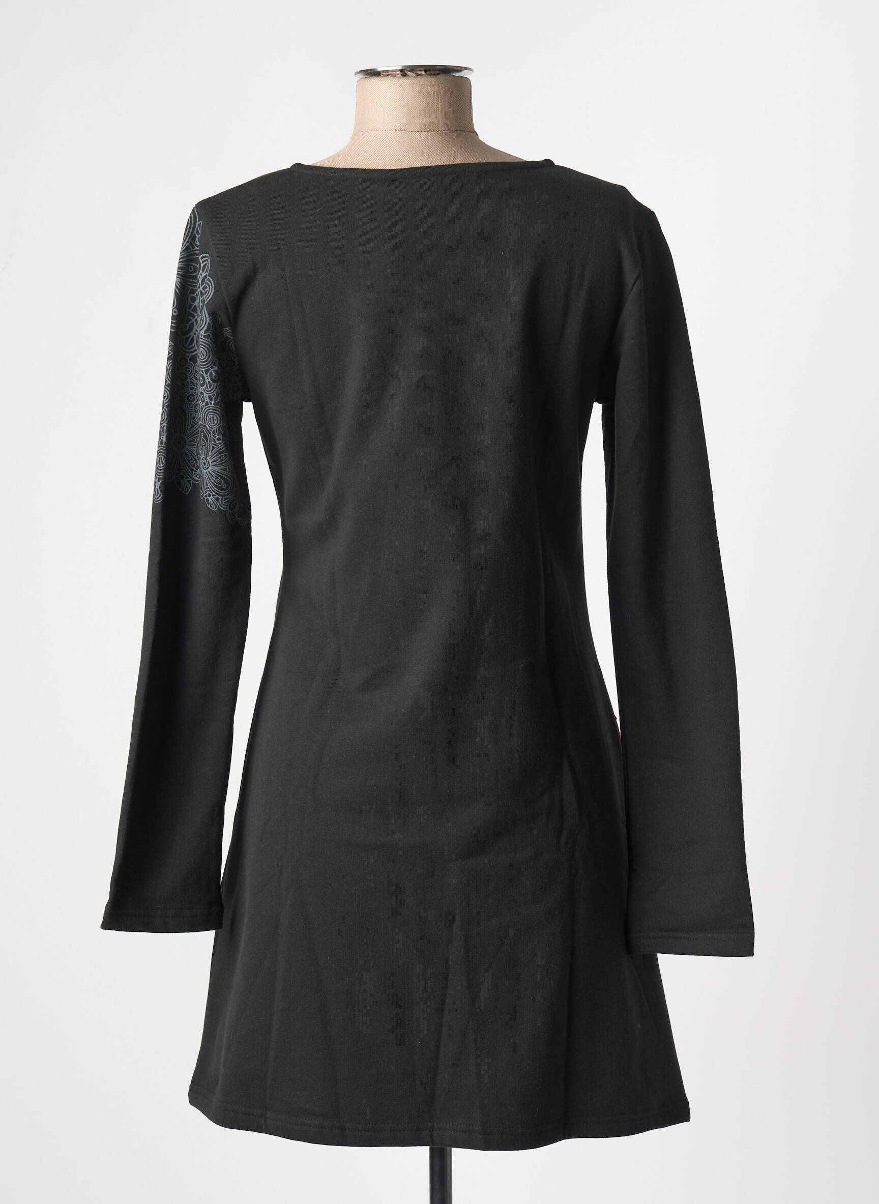 Rochie Scurtă Coton Du Monde Negru Mâneci Lungi