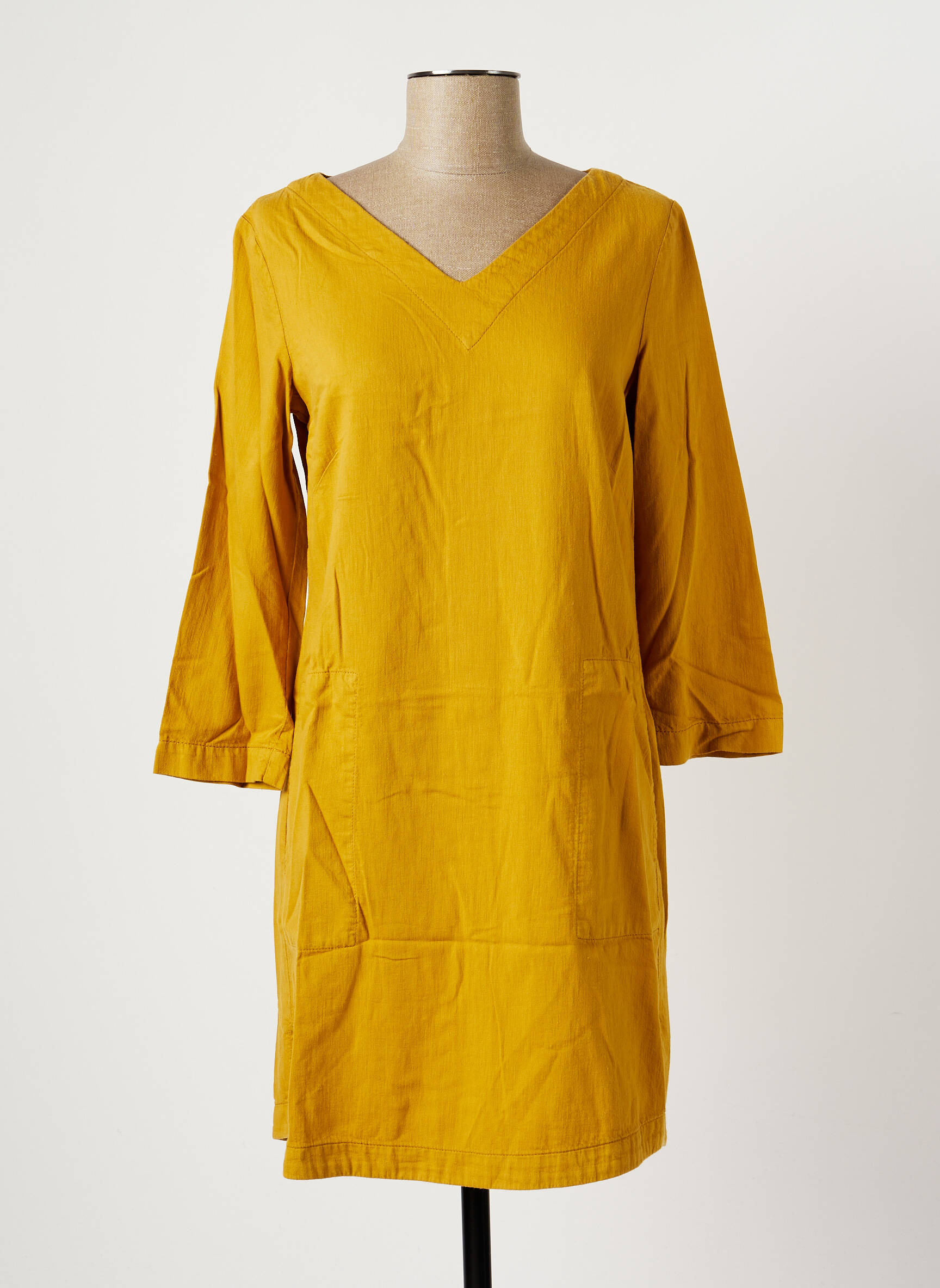 Rochie Scurtă Couturist Galben Mâneci Lungi