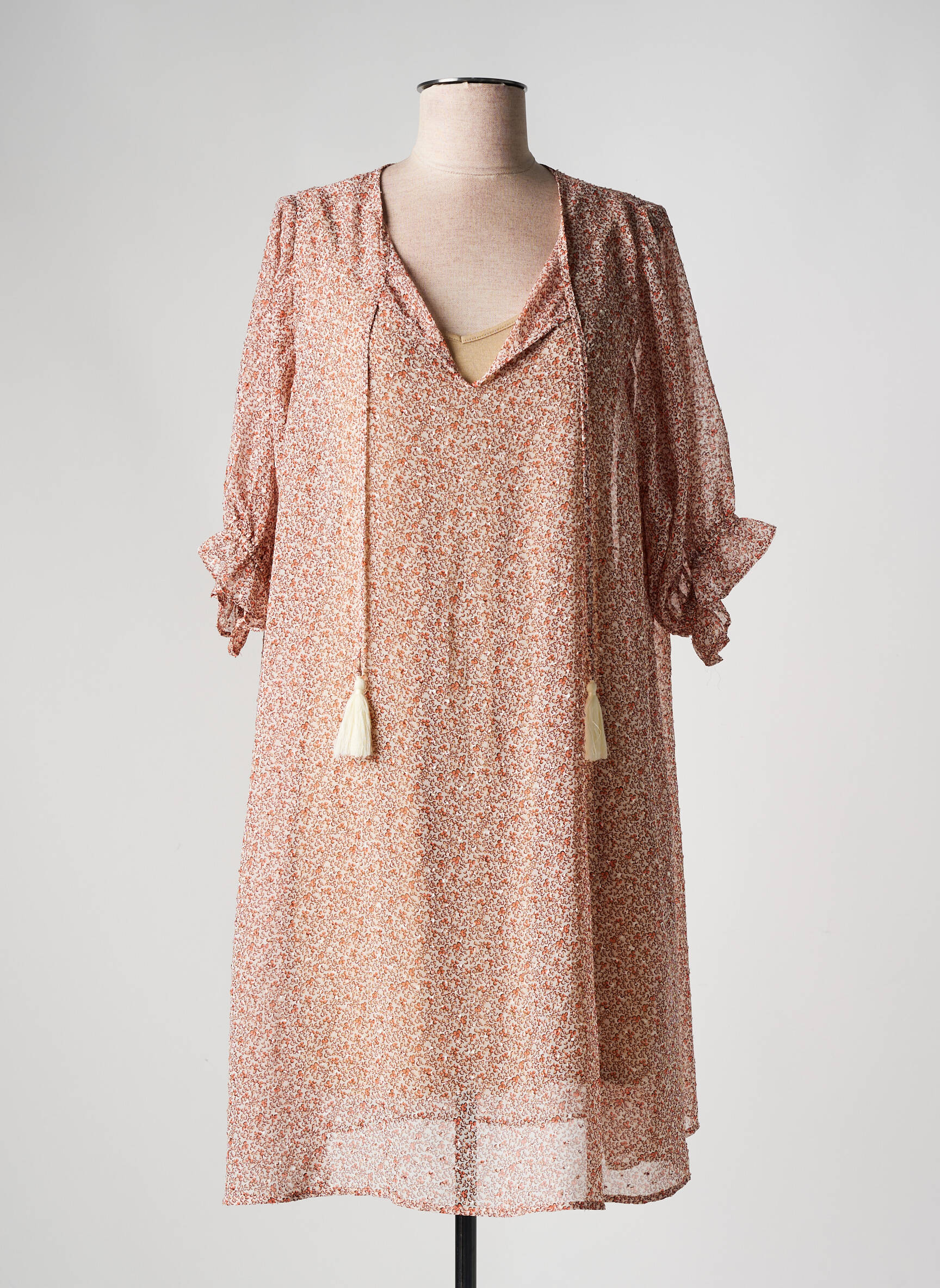 Rochie Scurtă Cream Portocaliu Mâneci 3/4