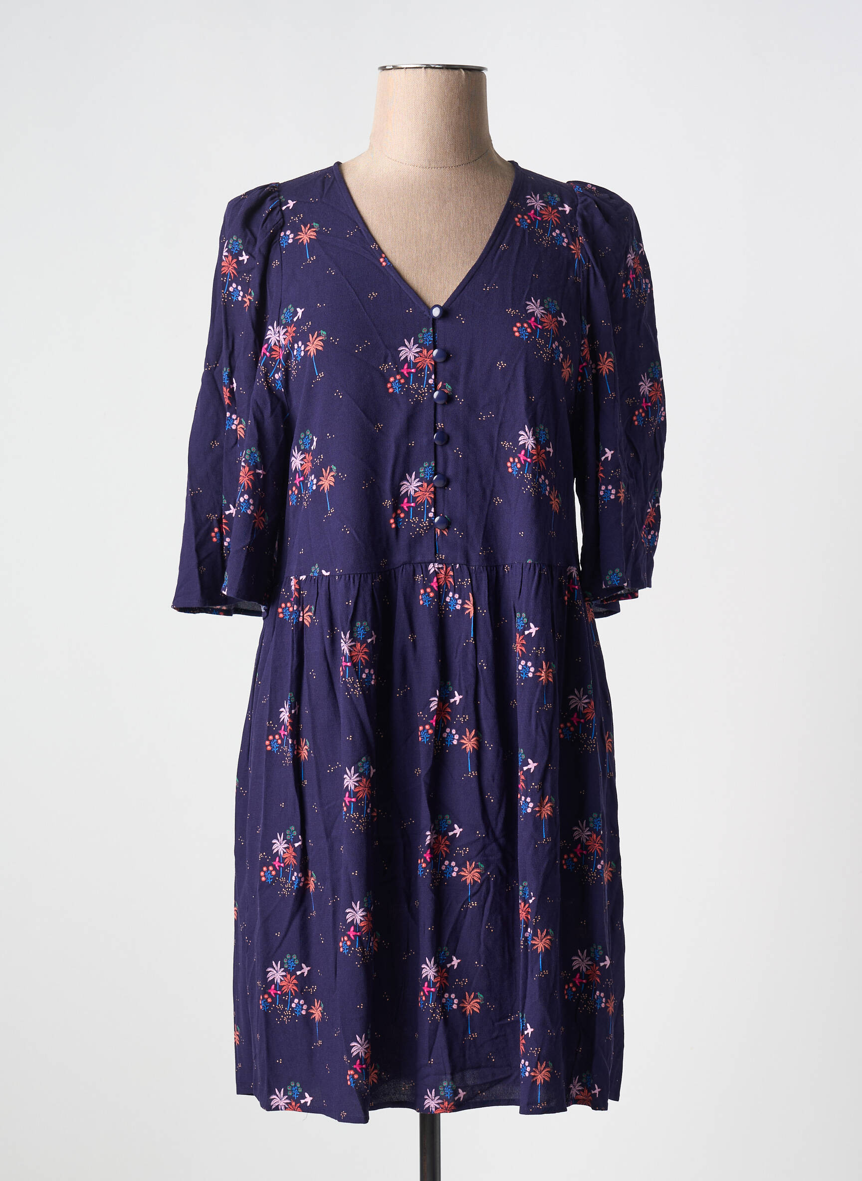 Rochie Scurtă Des Petits Hauts Albastru Mâneci 3/4