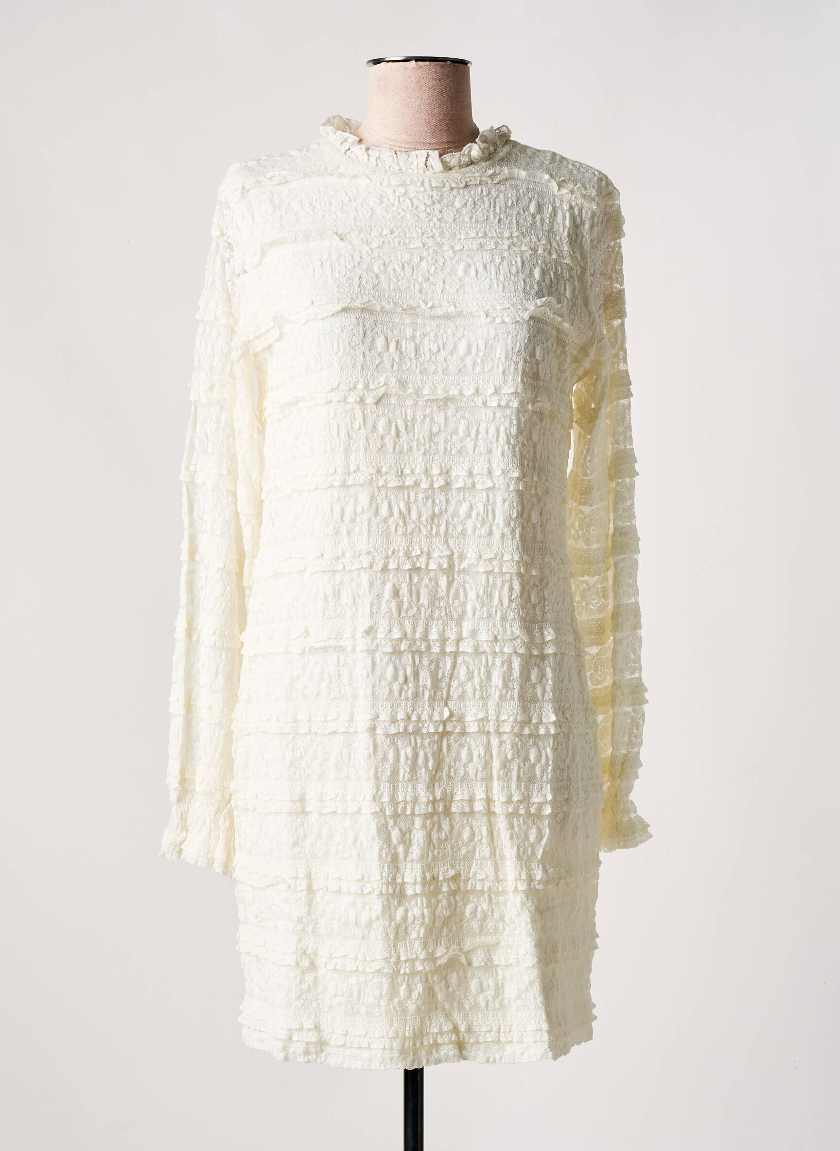 Rochie Scurtă Desigual Alb Mâneci Lungi