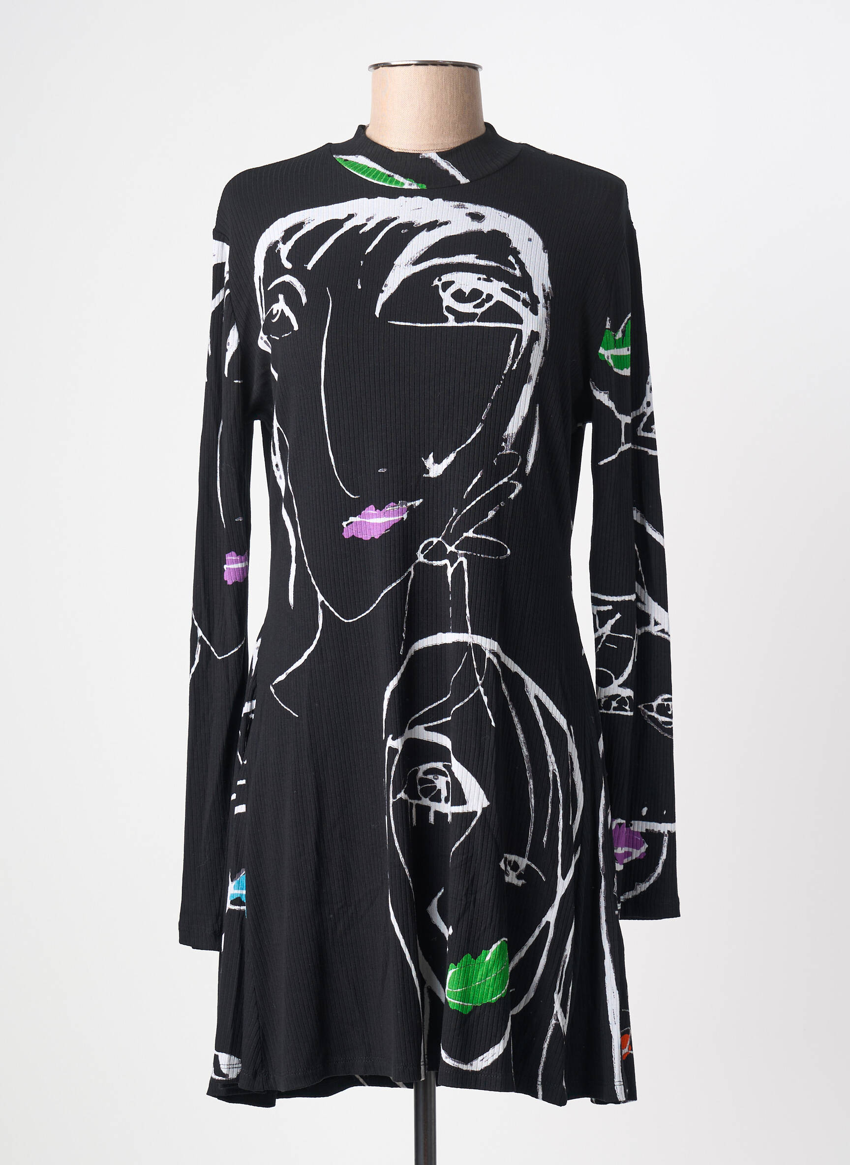 Rochie Scurtă Desigual Negru Mâneci Lungi