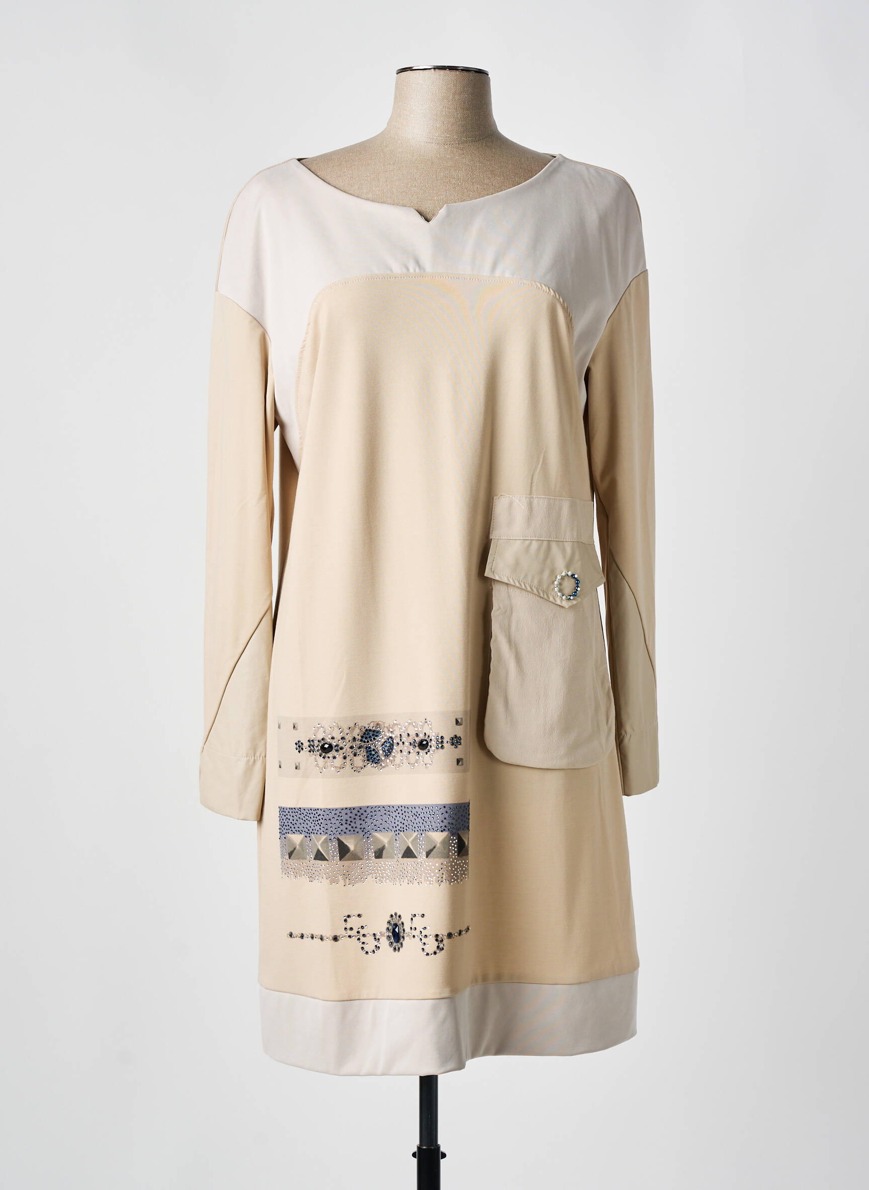 Rochie Scurtă Elisa Cavaletti Bej Mâneci Lungi