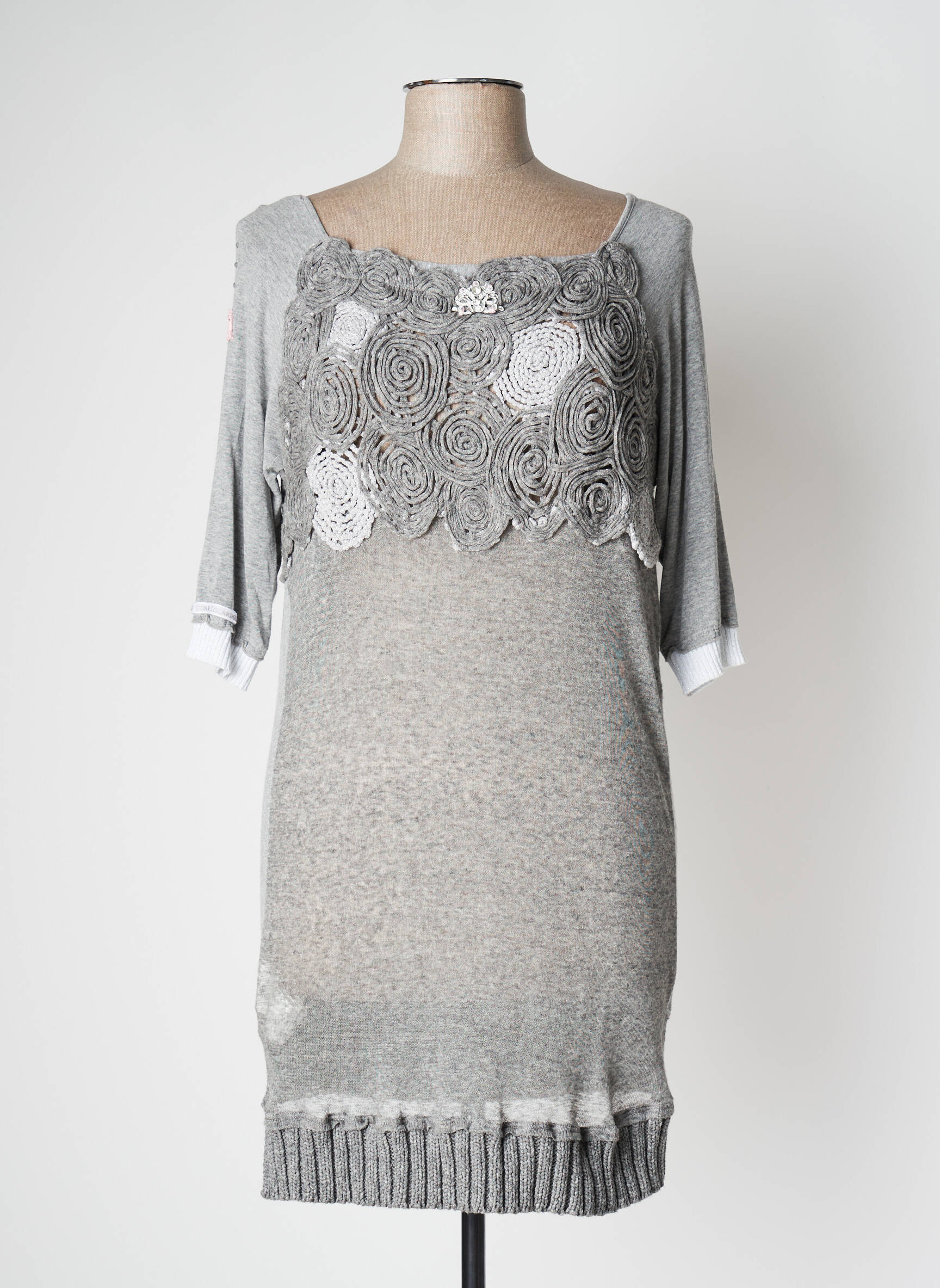 Rochie Scurtă Elisa Cavaletti Gri Mâneci 3/4