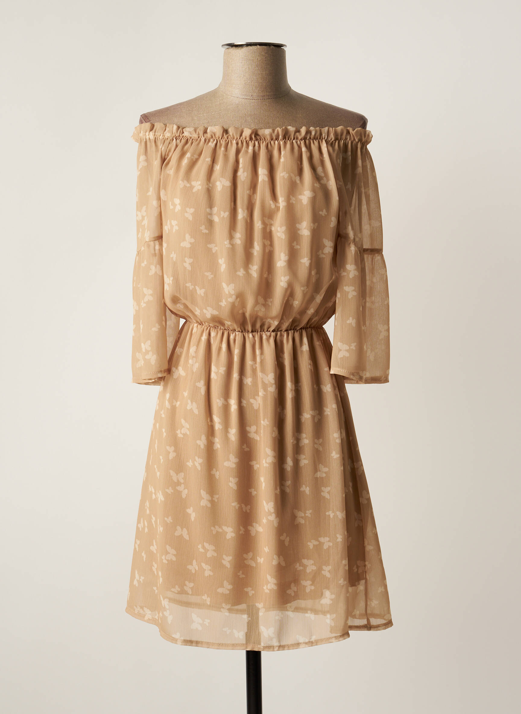 Rochie Scurtă Gaudi Bej Mâneci 3/4