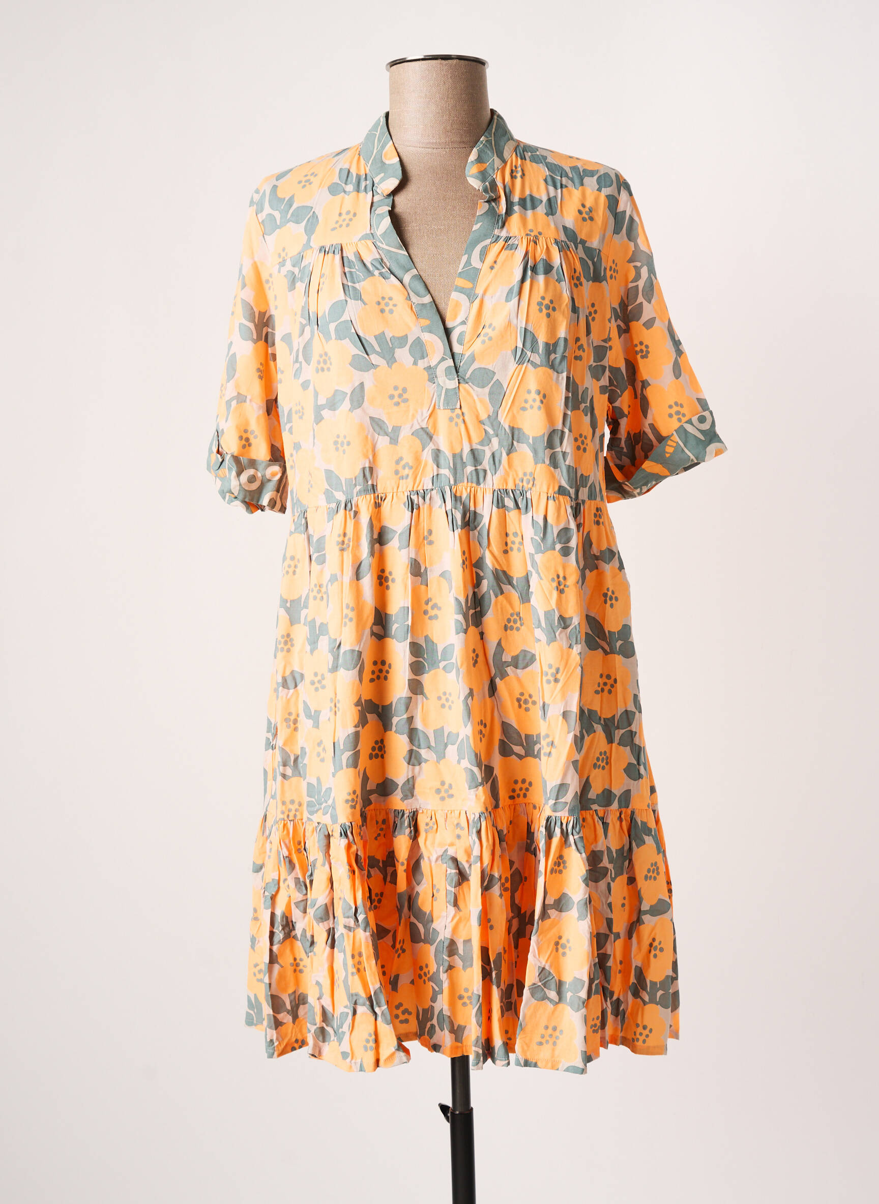 Rochie Scurtă Genesis Portocaliu Mâneci Scurte