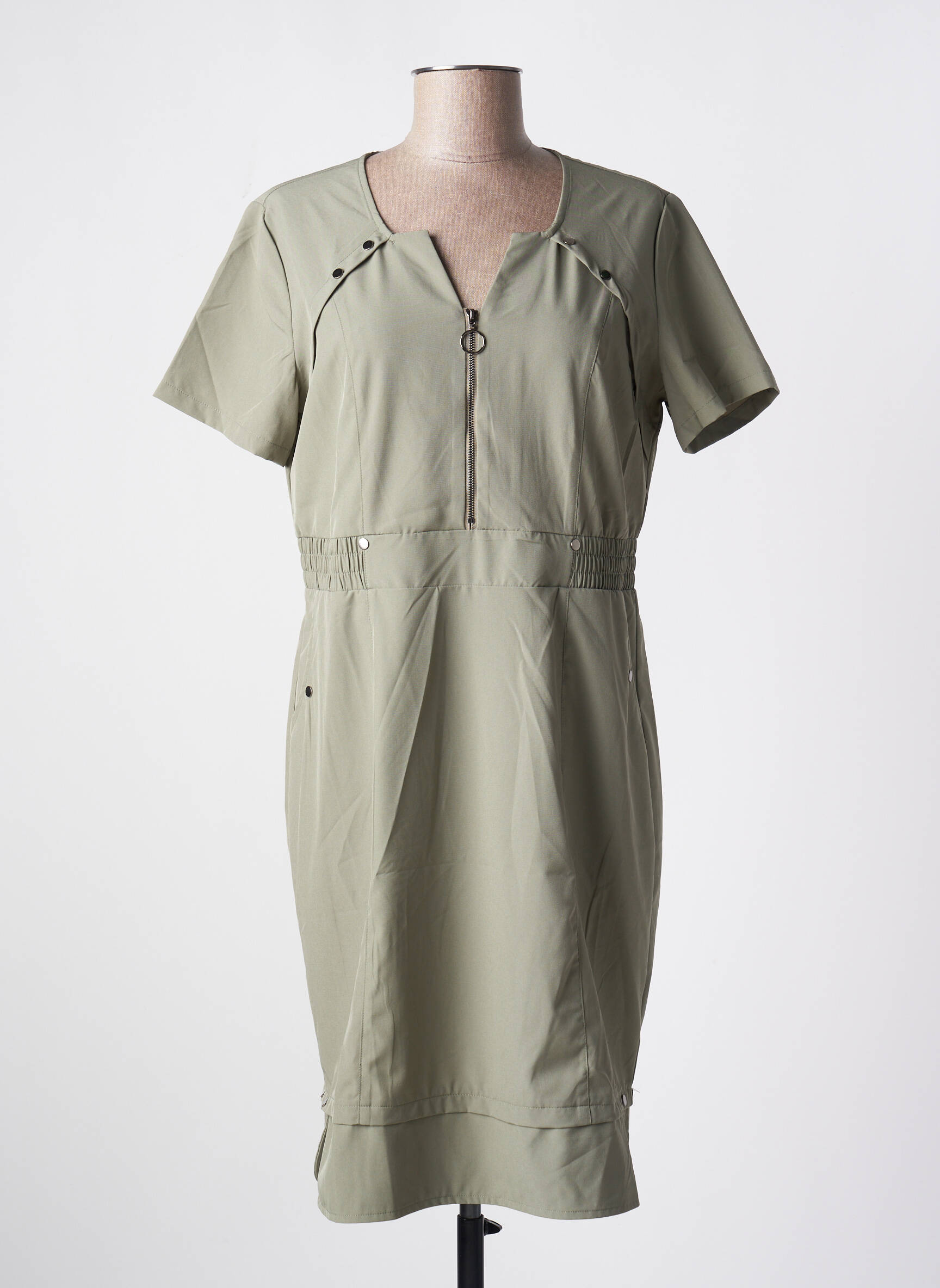 Rochie Scurtă Griffon Verde Mâneci Scurte