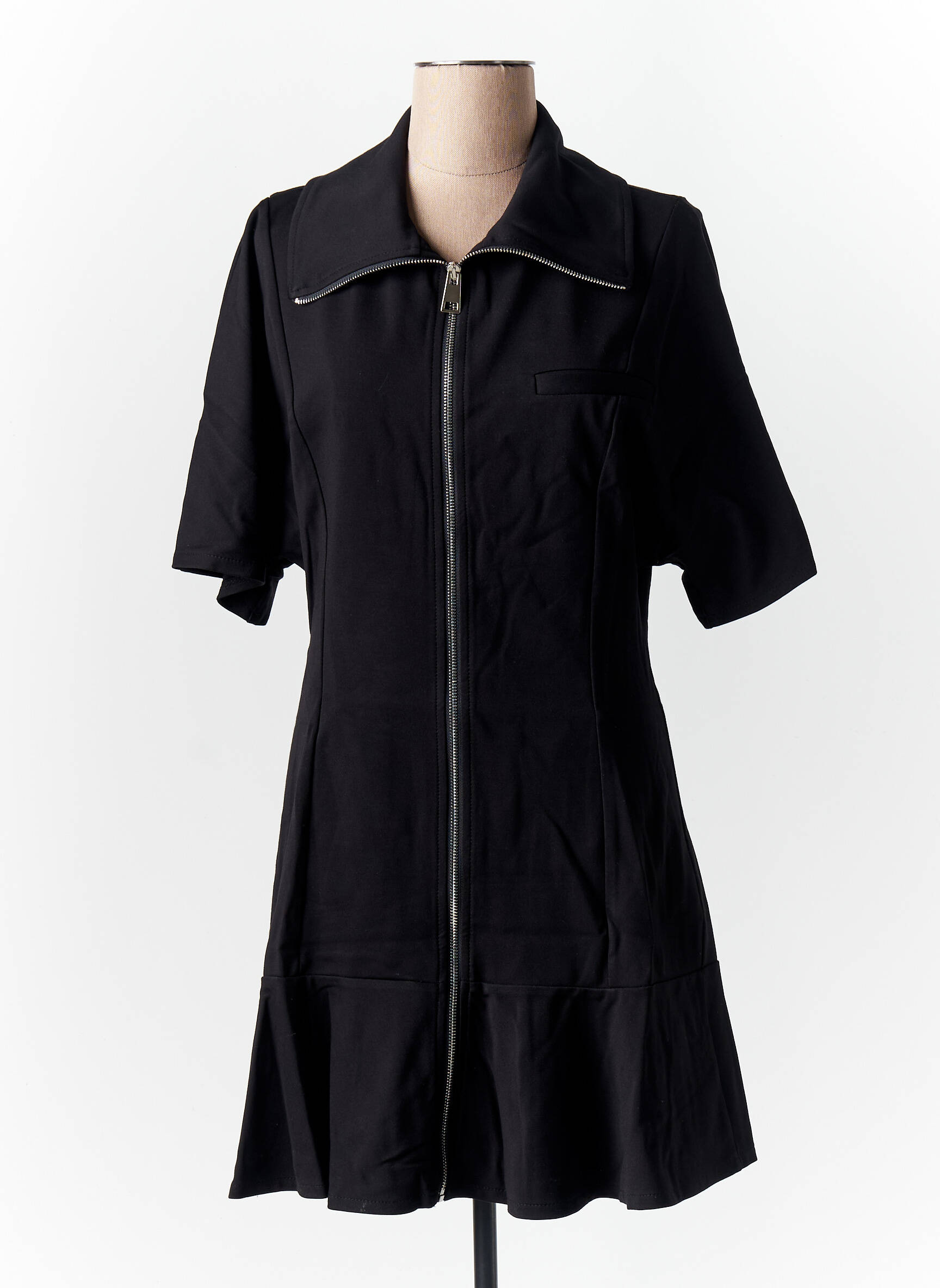 Rochie Scurtă Imperial Negru Mâneci Scurte