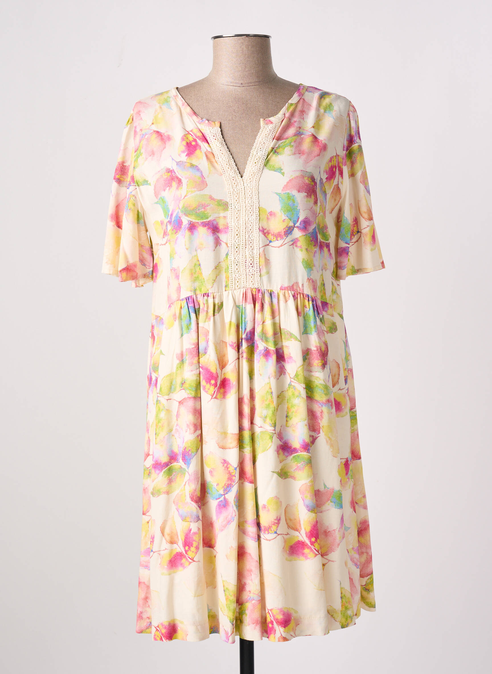 Rochie Scurtă Imua Bej Mâneci Scurte