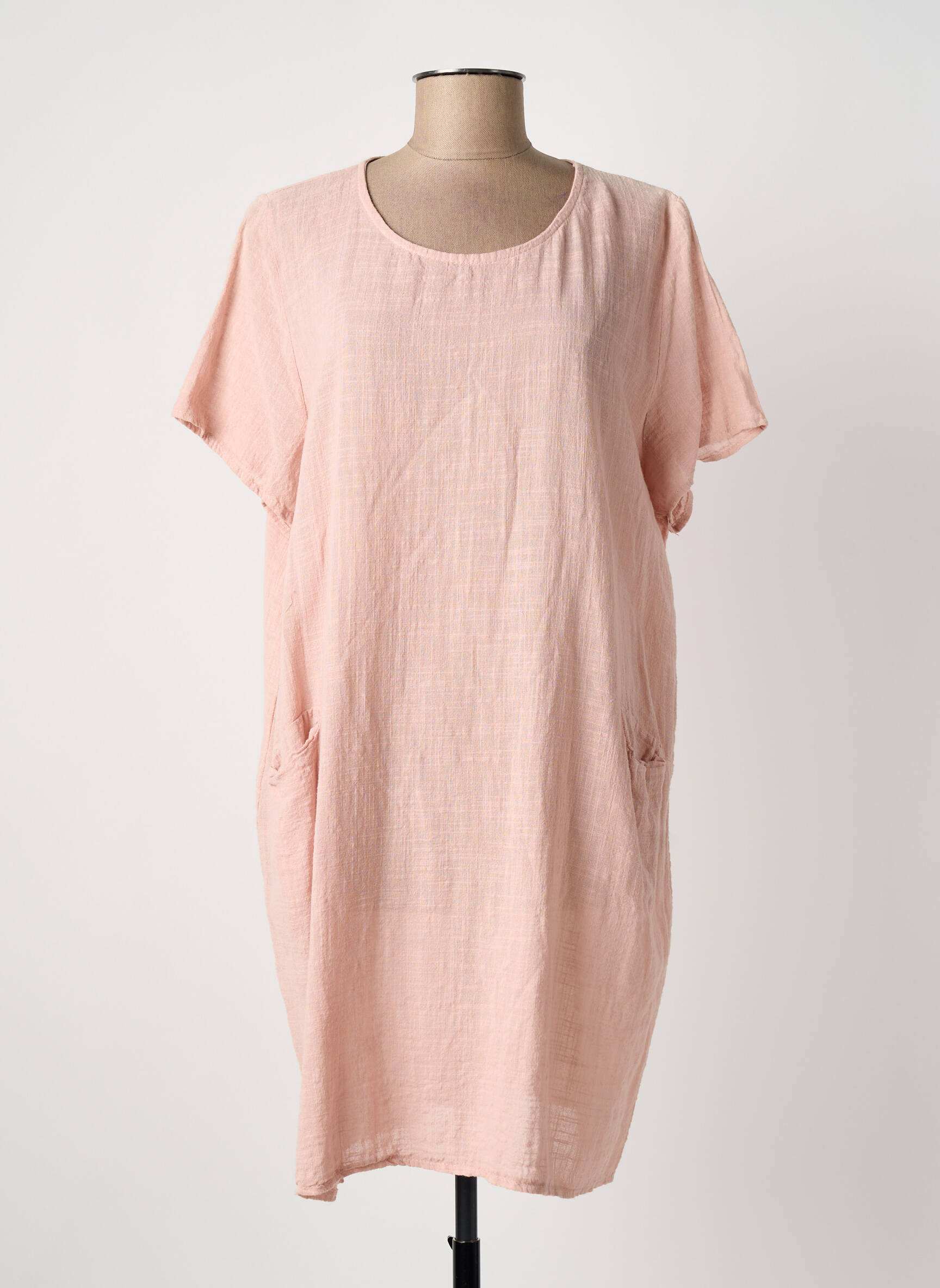 Rochie Scurtă Italy Moda Roz Deschis Mâneci Scurte