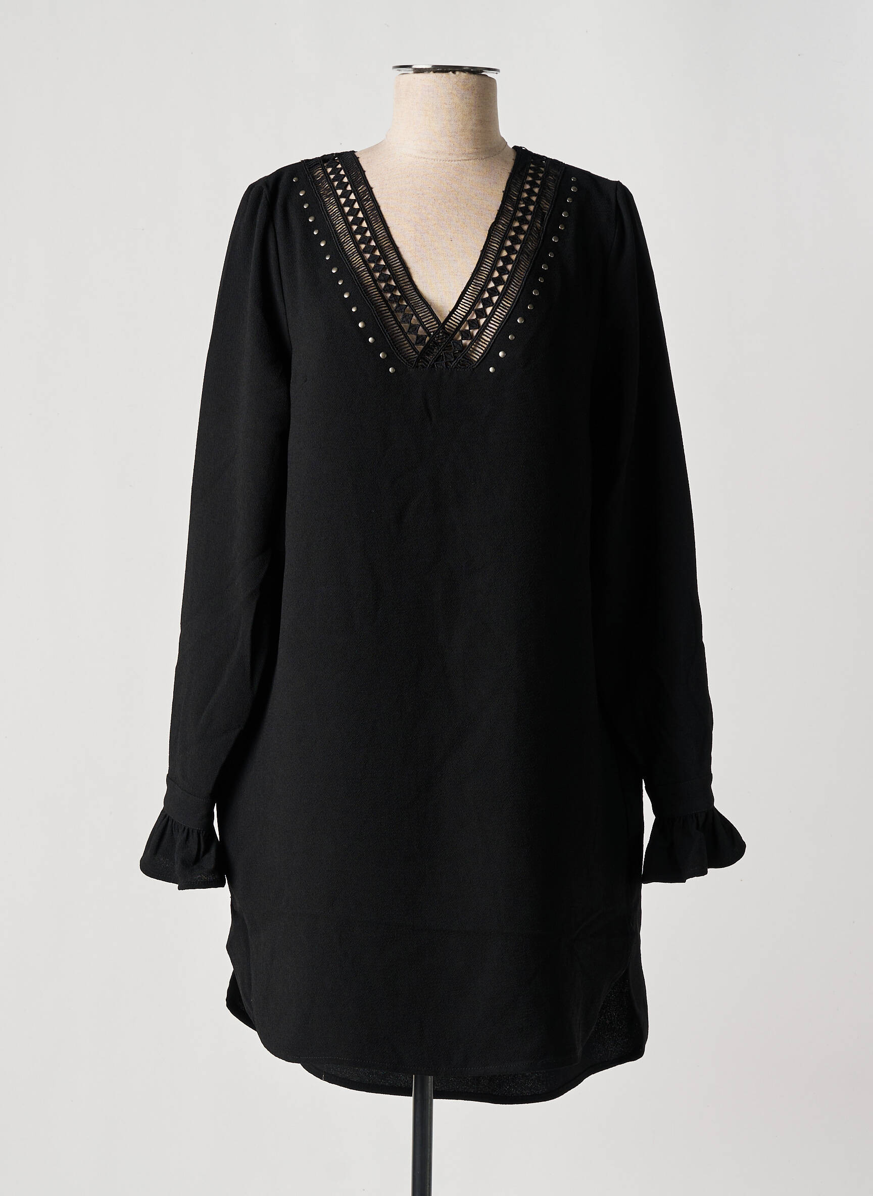 Rochie Scurtă Kaporal Negru Mâneci Lungi