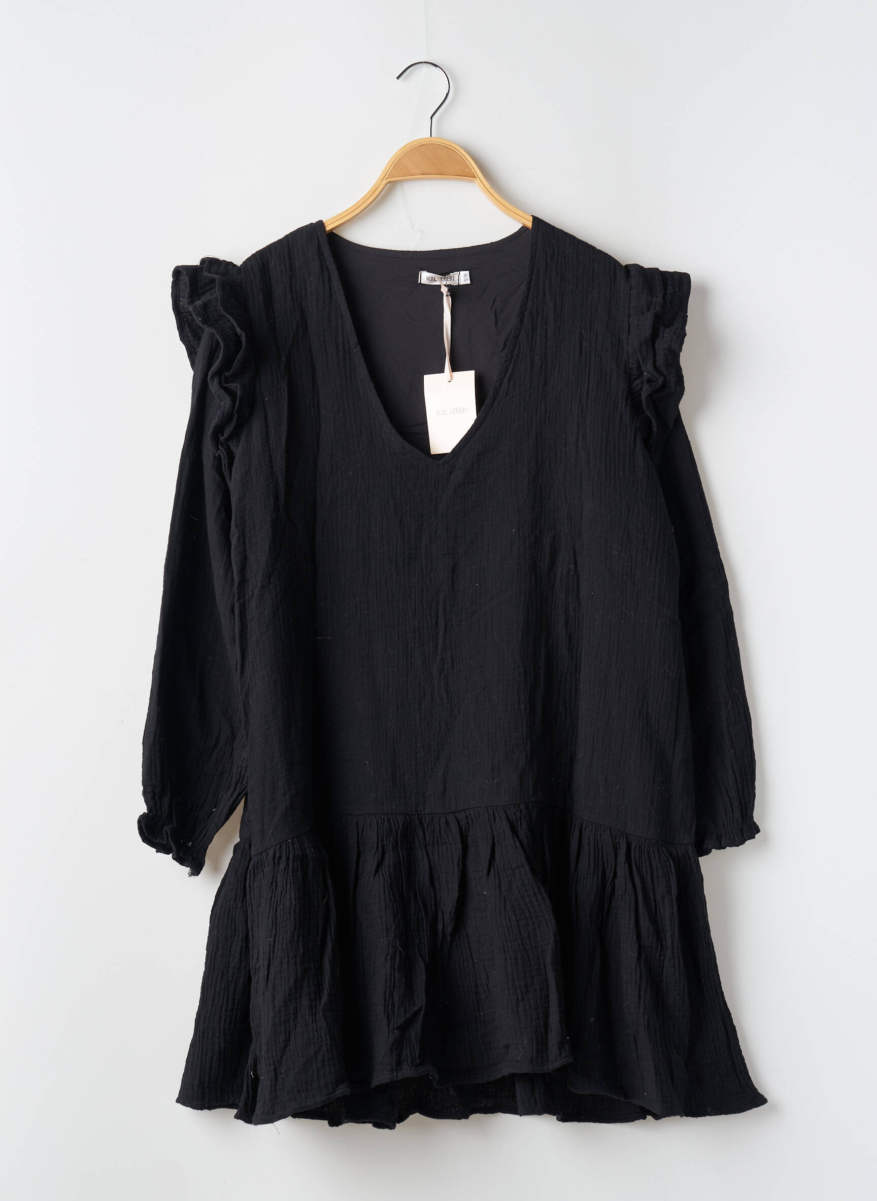 Rochie Scurtă Kilibbi Negru Mâneci Lungi