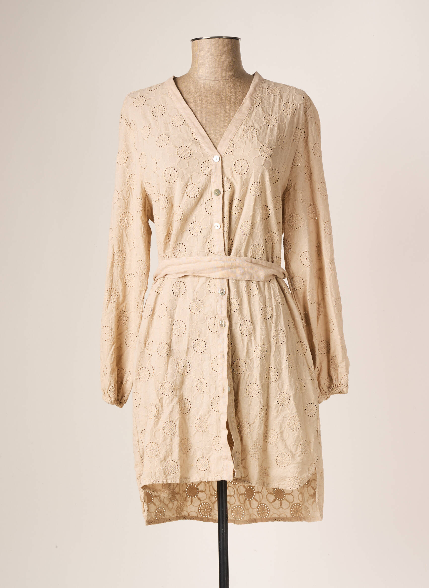 Rochie Scurtă La Fabbrica Del Lino Bej Mâneci Lungi