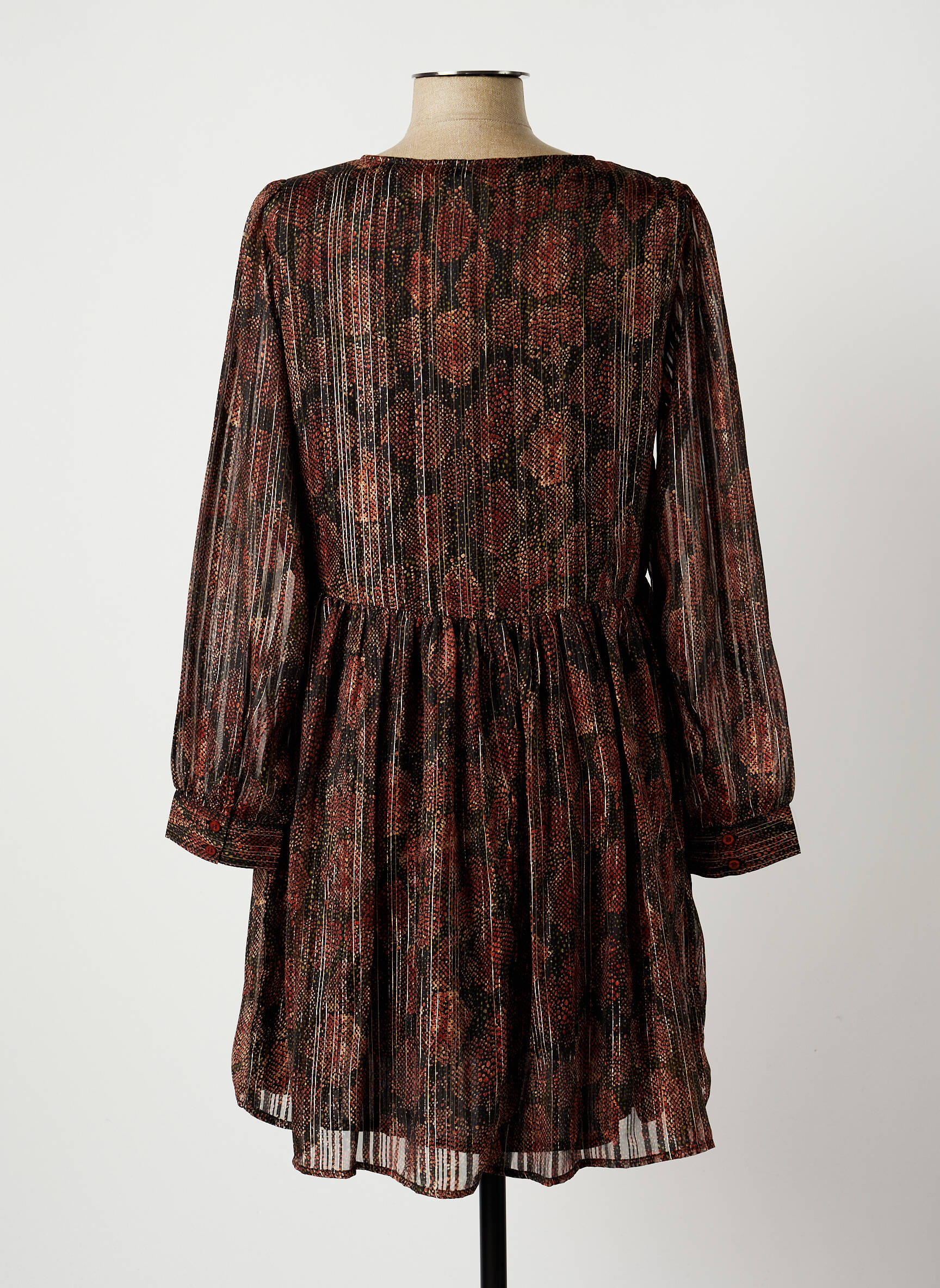 Rochie Scurtă La Petite Etoile Maro Mâneci Lungi