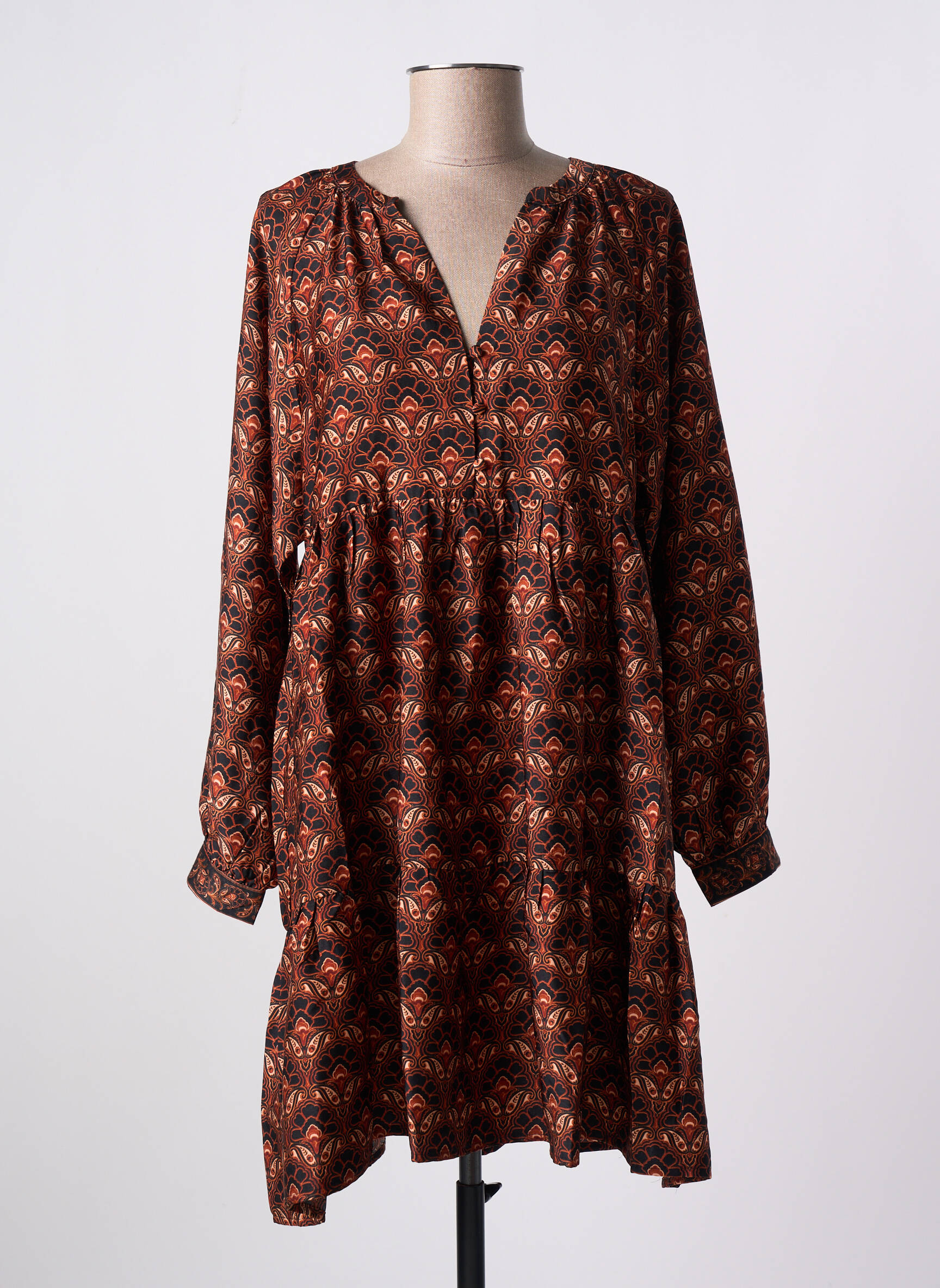 Rochie Scurtă La Petite Etoile Maro Mâneci Lungi