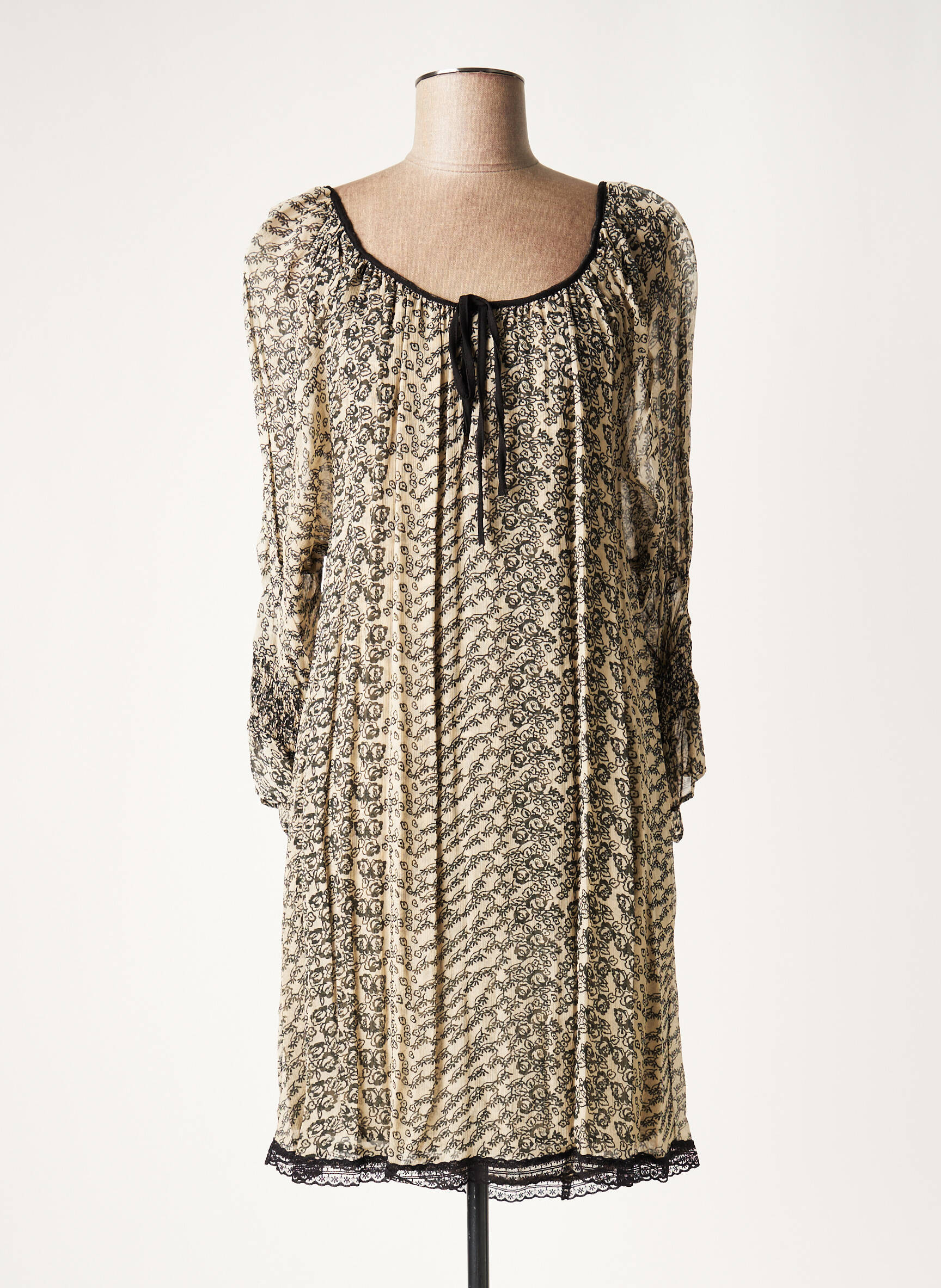 Rochie Scurtă Lauren Vidal Bej Mâneci 3/4
