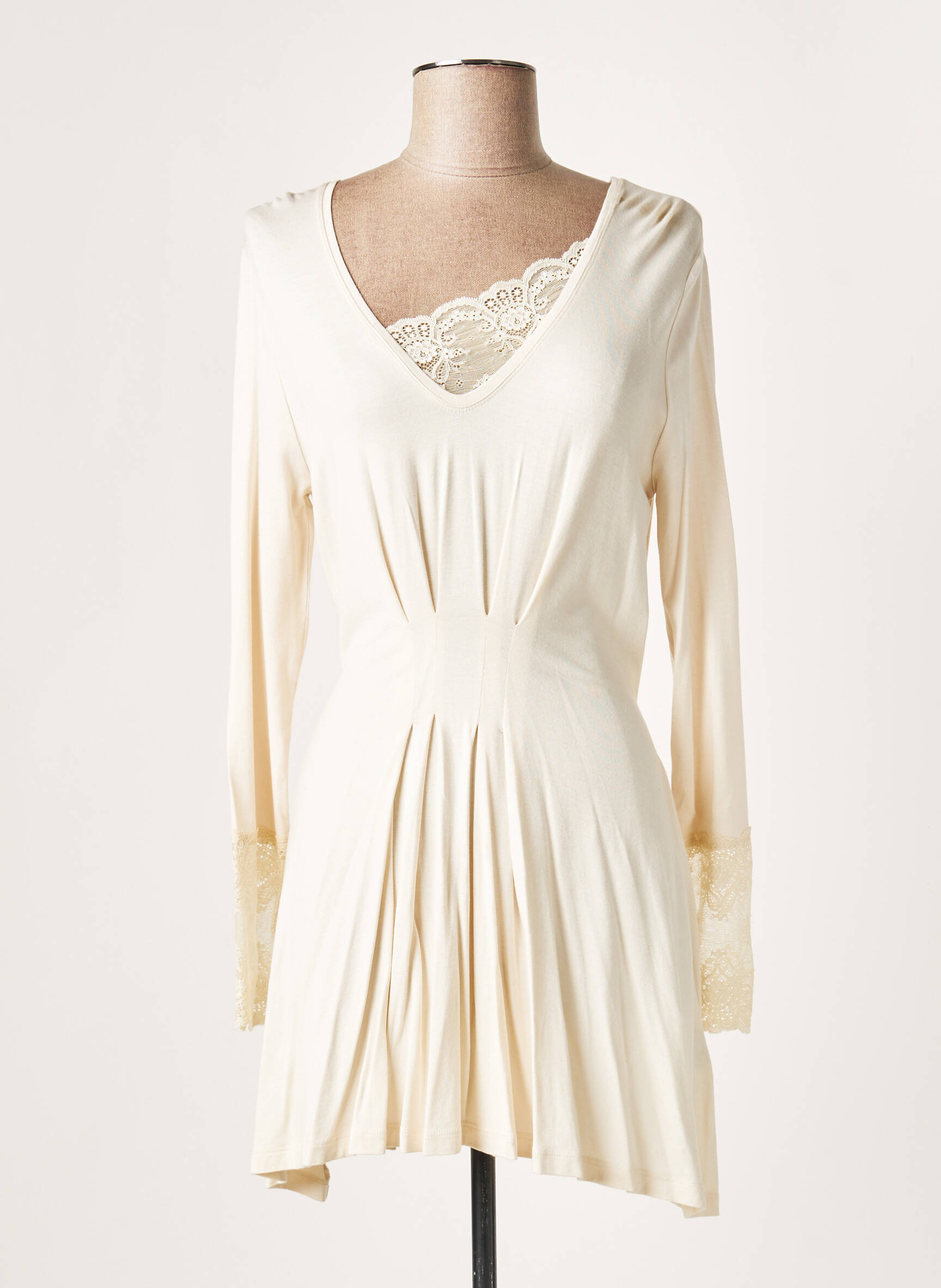 Rochie Scurtă Lauren Vidal Bej Mâneci Lungi