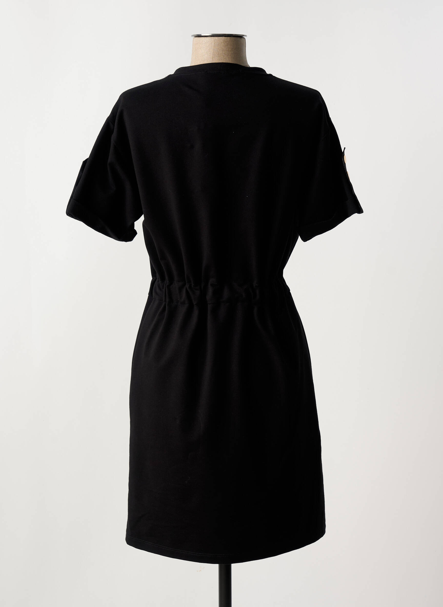 Rochie Scurtă Leslie Negru Mâneci Scurte