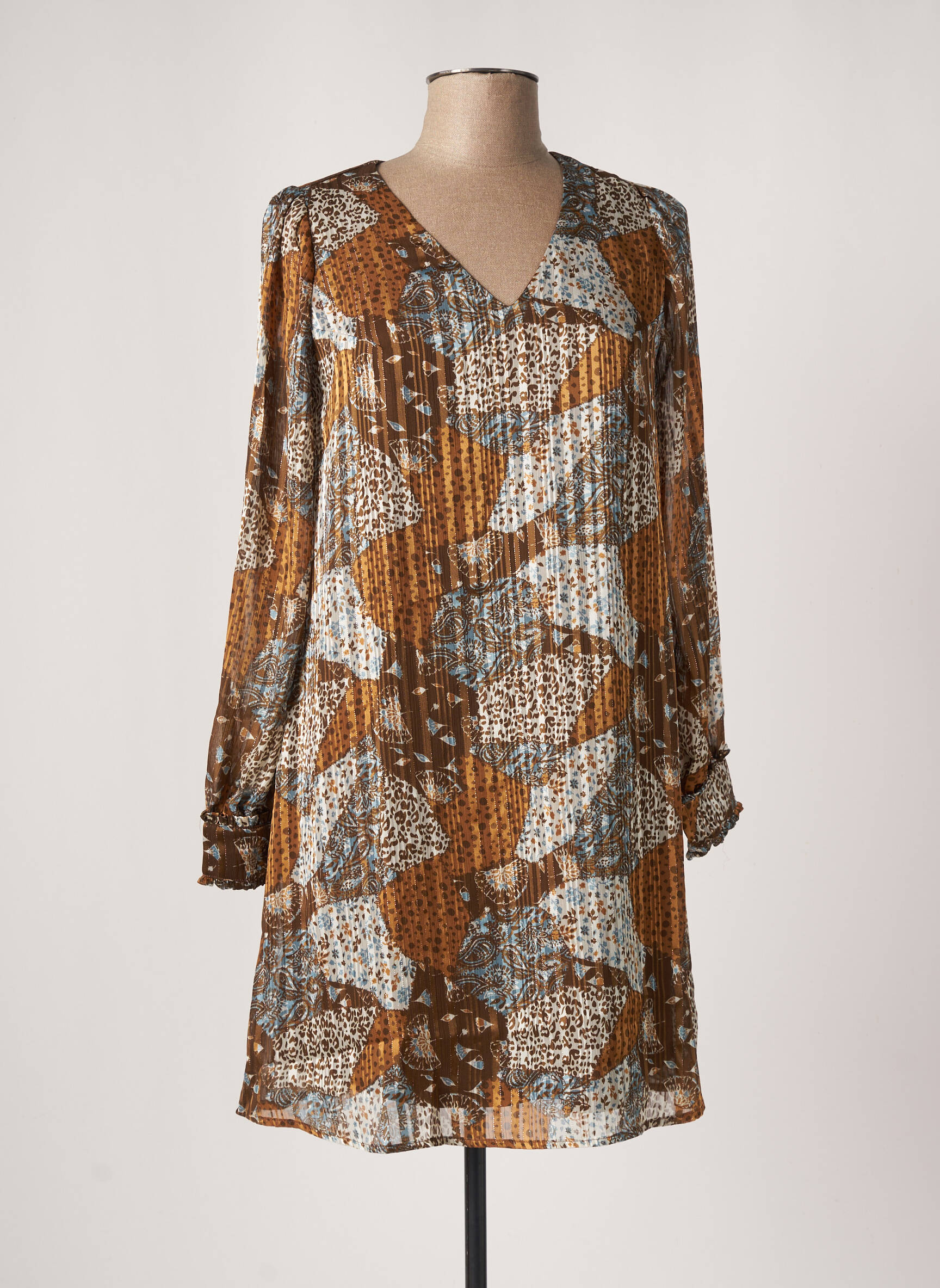 Rochie Scurtă Lola Espeleta Maro Mâneci Lungi
