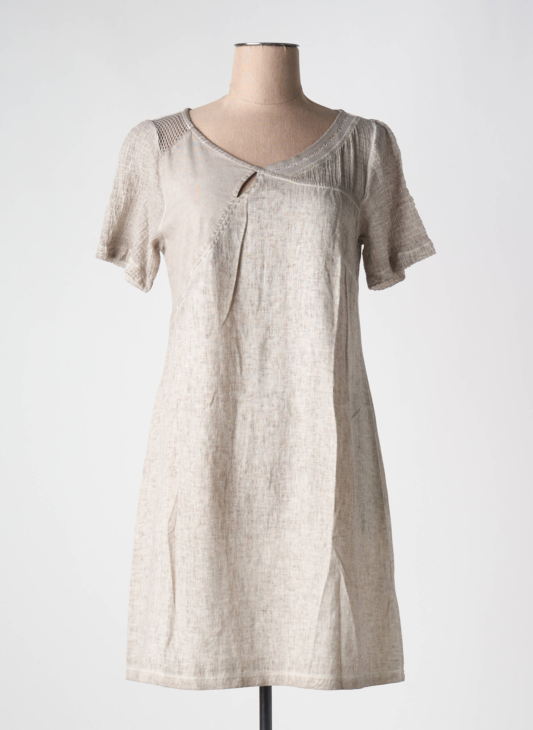 Rochie Scurtă Maloka Gri Mâneci Scurte
