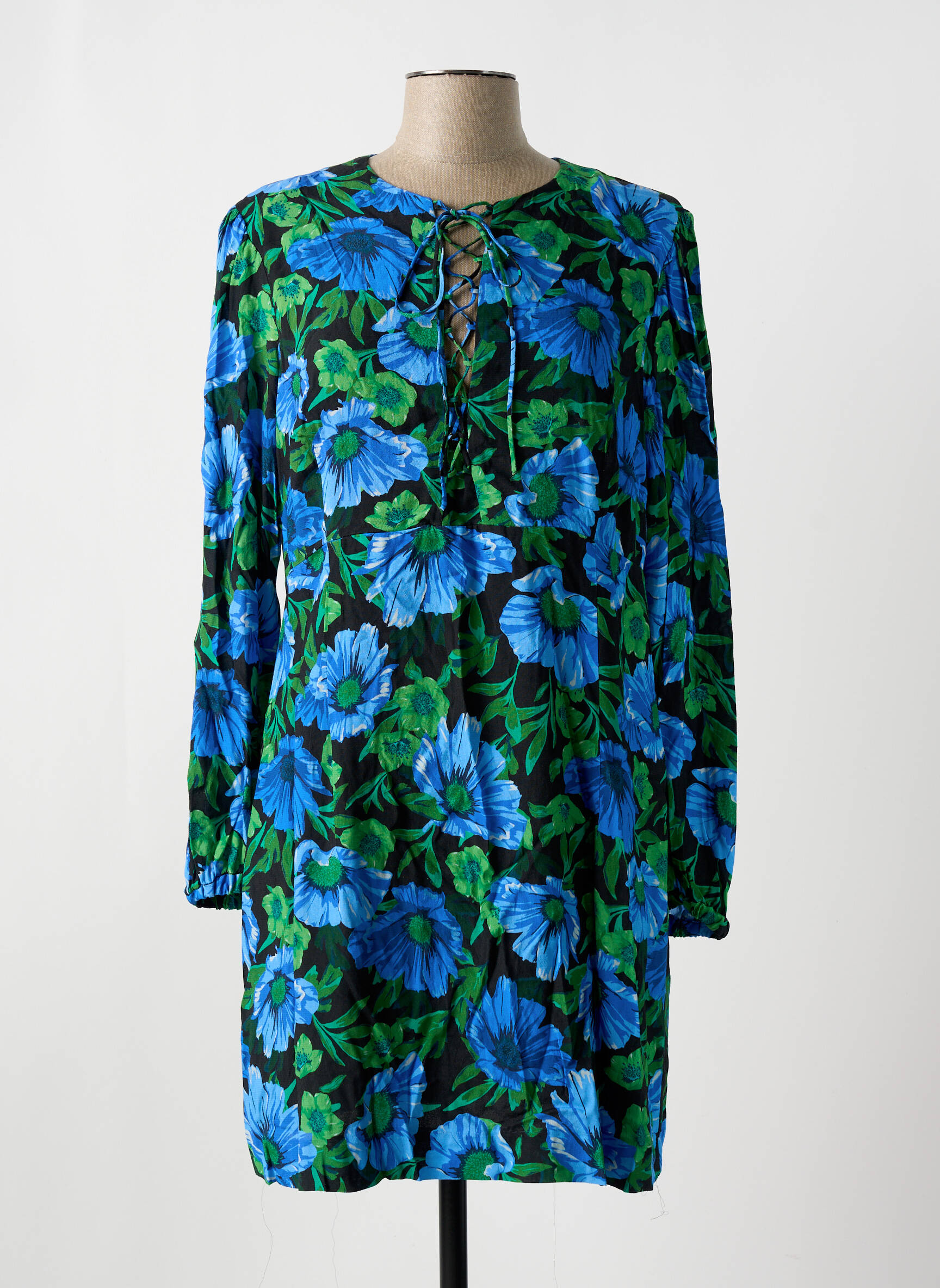 Rochie Scurtă Mango Albastru Mâneci Lungi