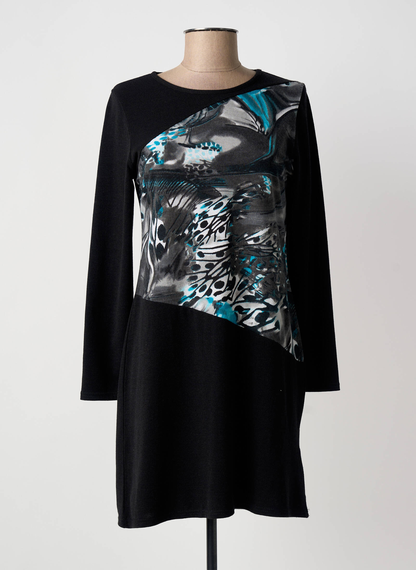Rochie Scurtă Marble Negru Mâneci Lungi