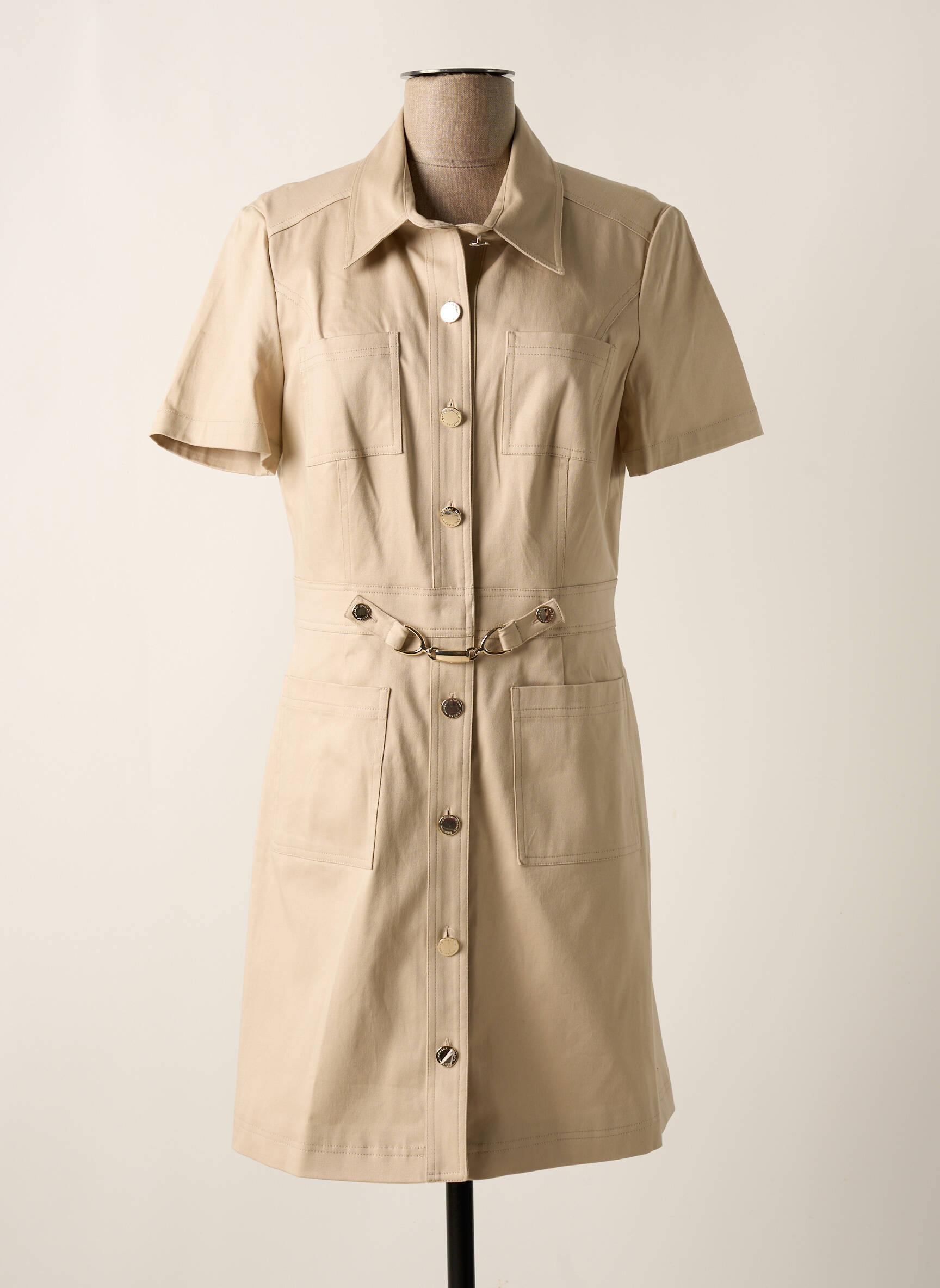 Rochie Scurtă Morgan Bej Mâneci Scurte