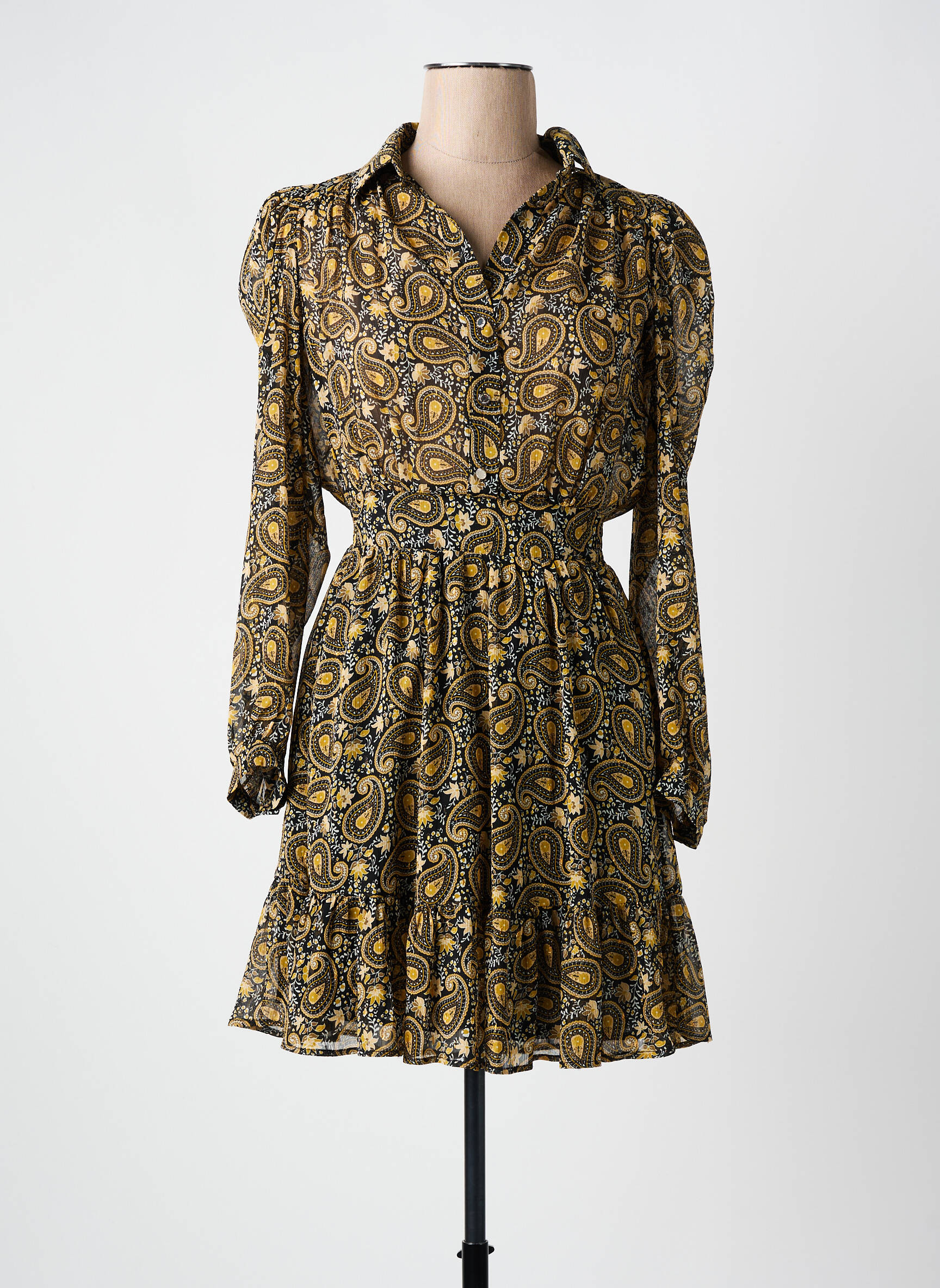 Rochie Scurtă Morgan Galben Mâneci Lungi