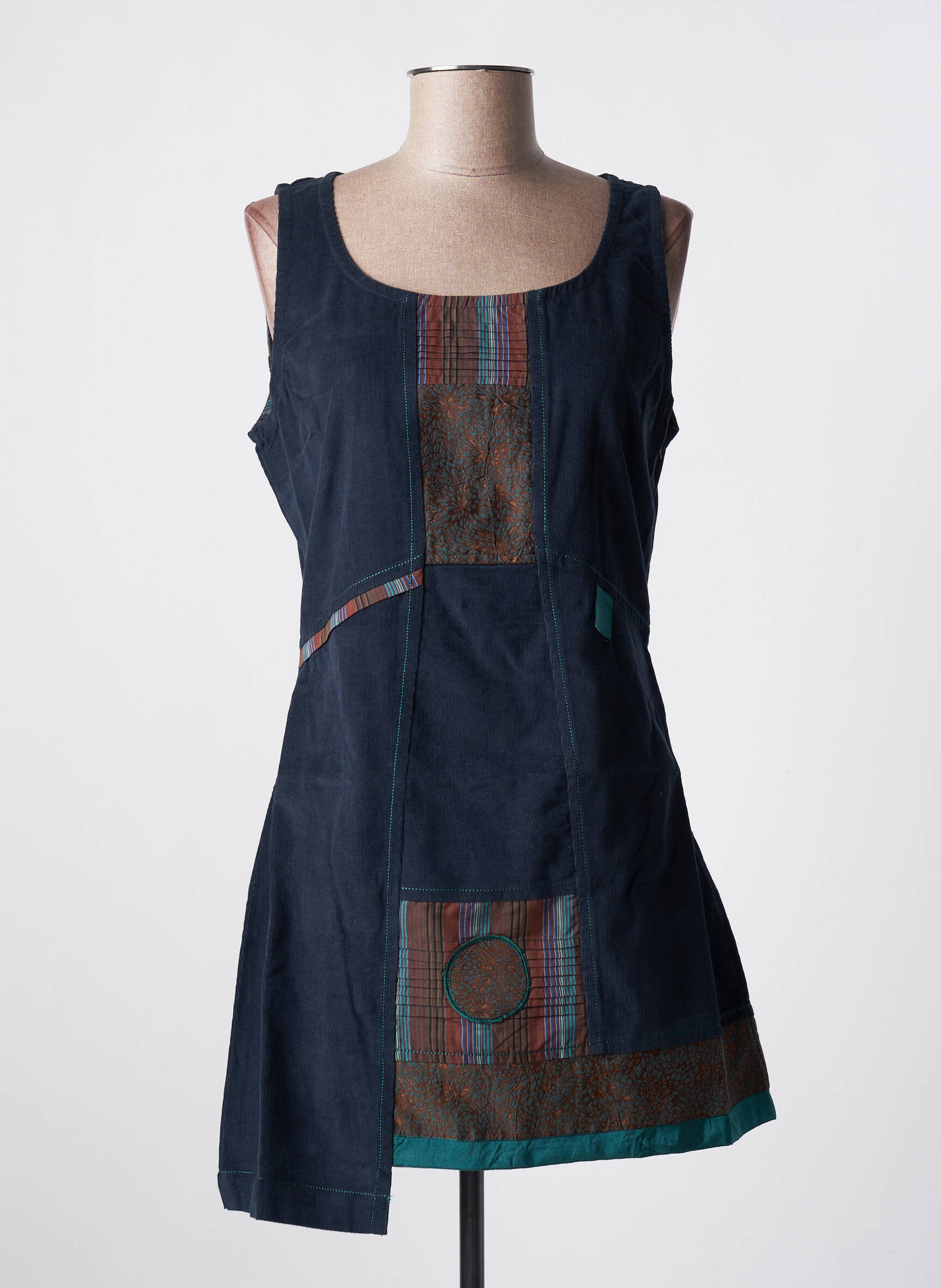 Rochie Scurtă Nid D'abeille Albastru Fără Mâneci
