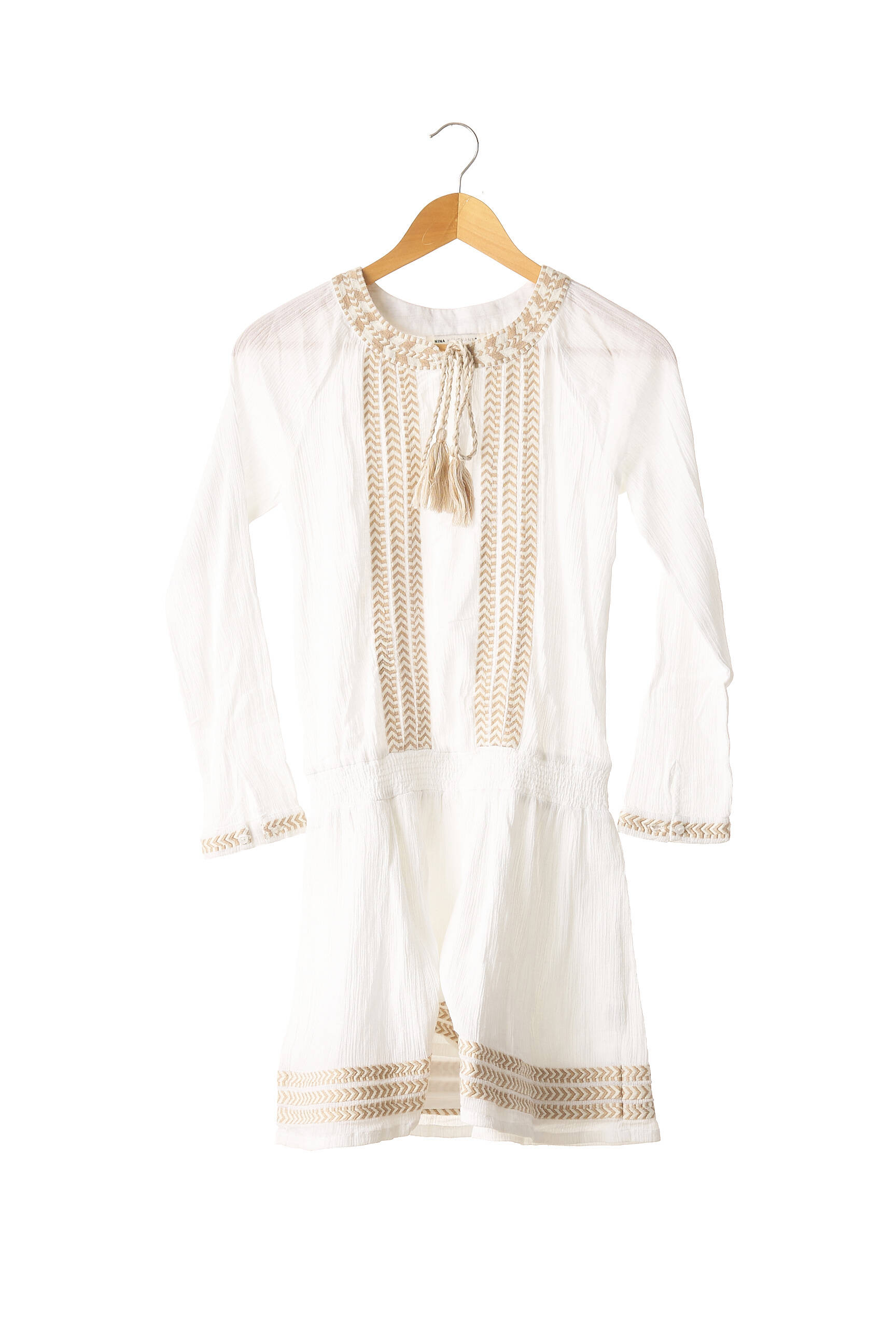 Rochie Scurtă Nina Kaufmann Bej Mâneci Lungi