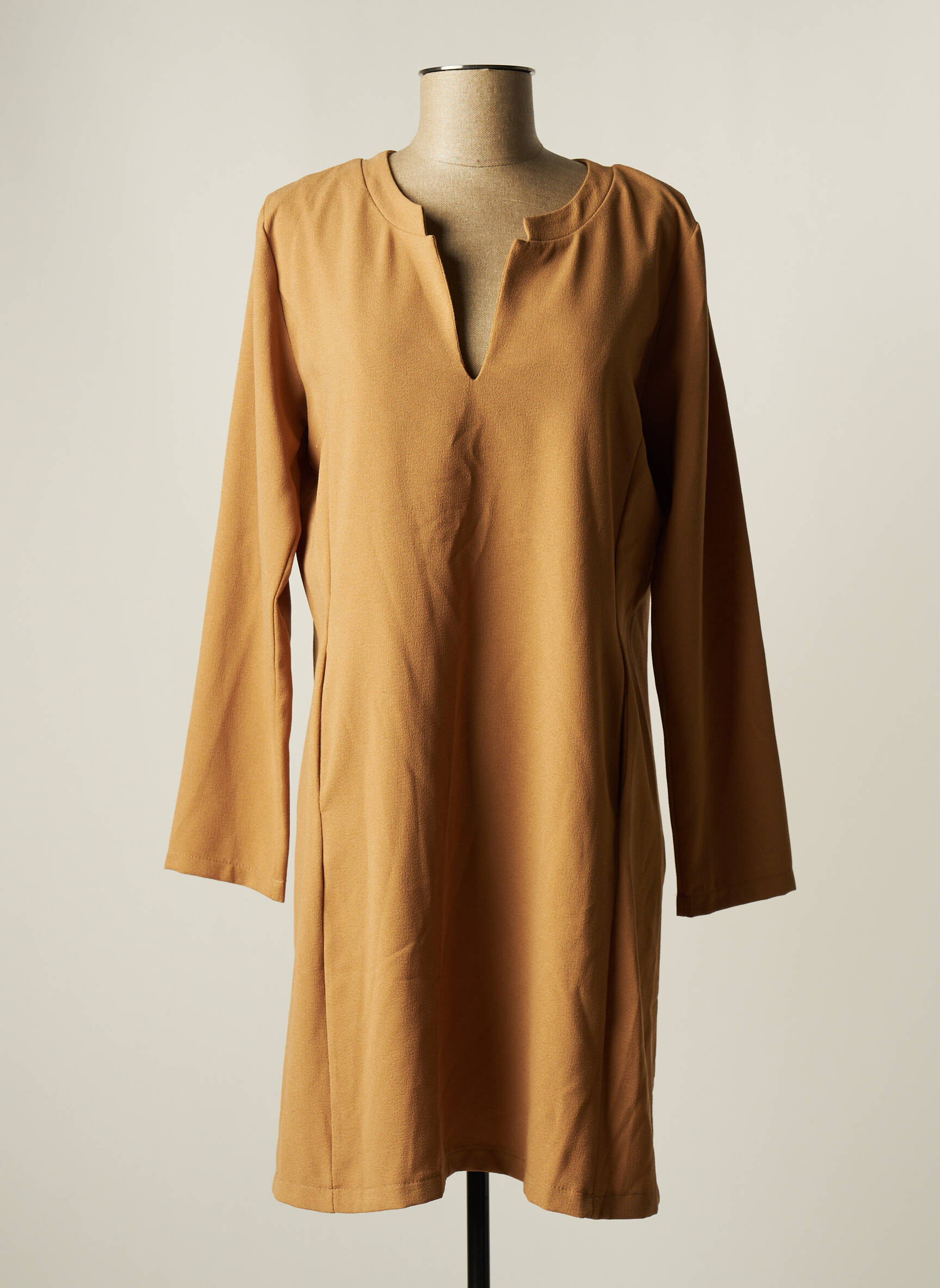 Rochie Scurtă Pako Litto Bej Mâneci Lungi