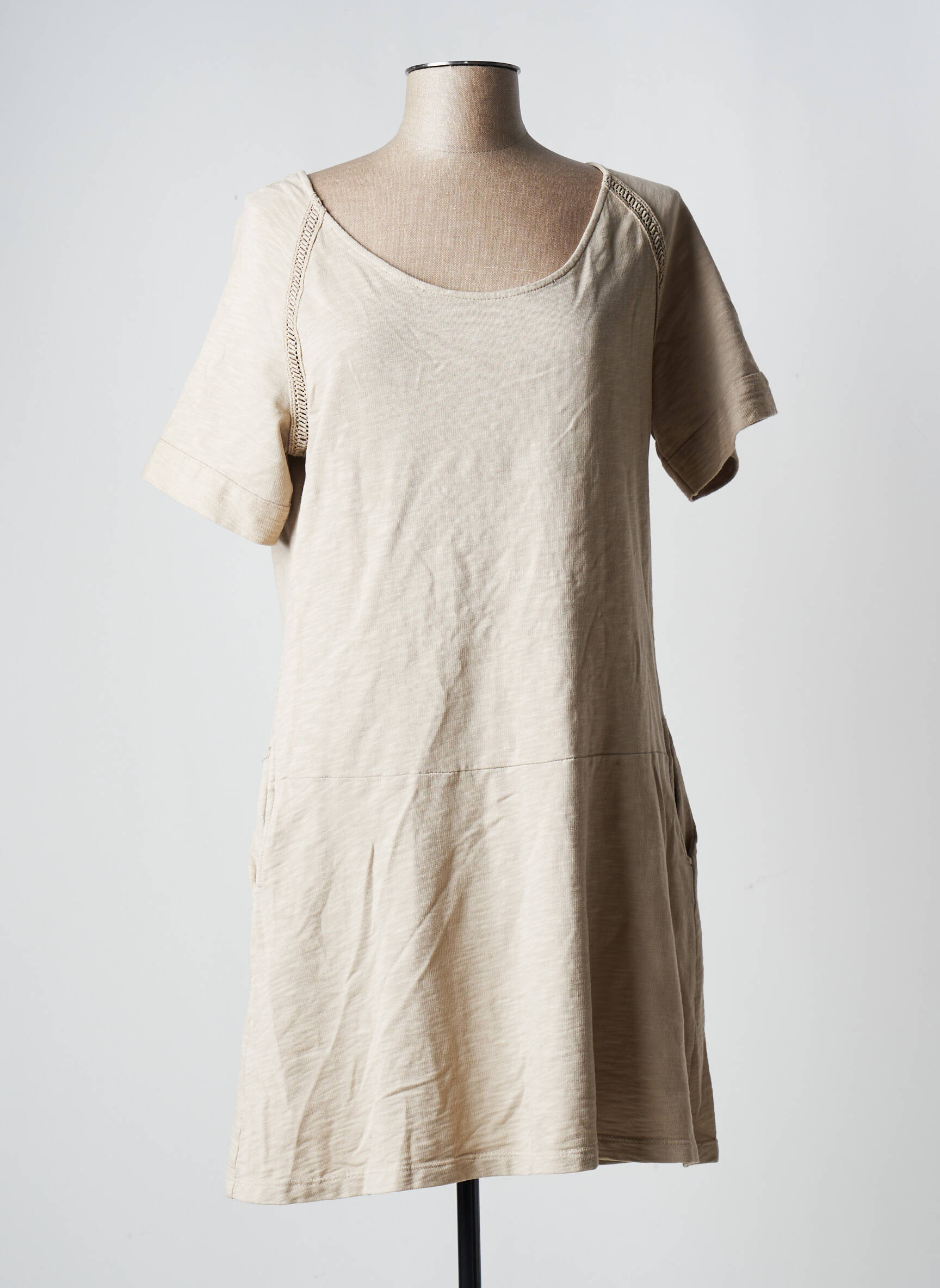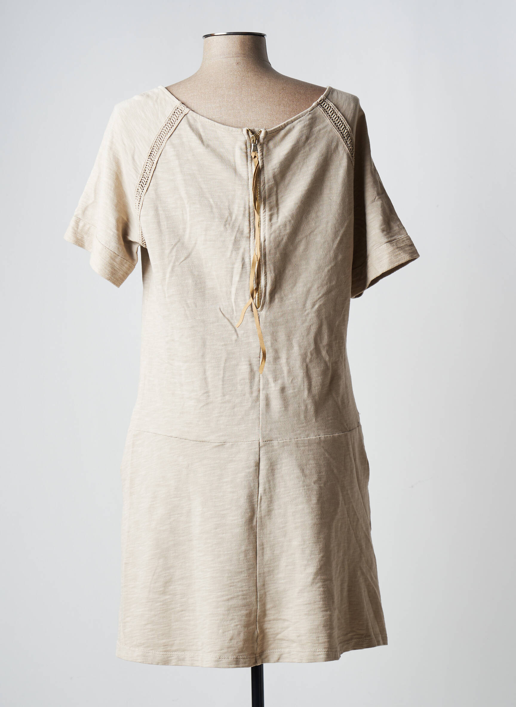 Rochie Scurtă Pako Litto Bej Mâneci Scurte