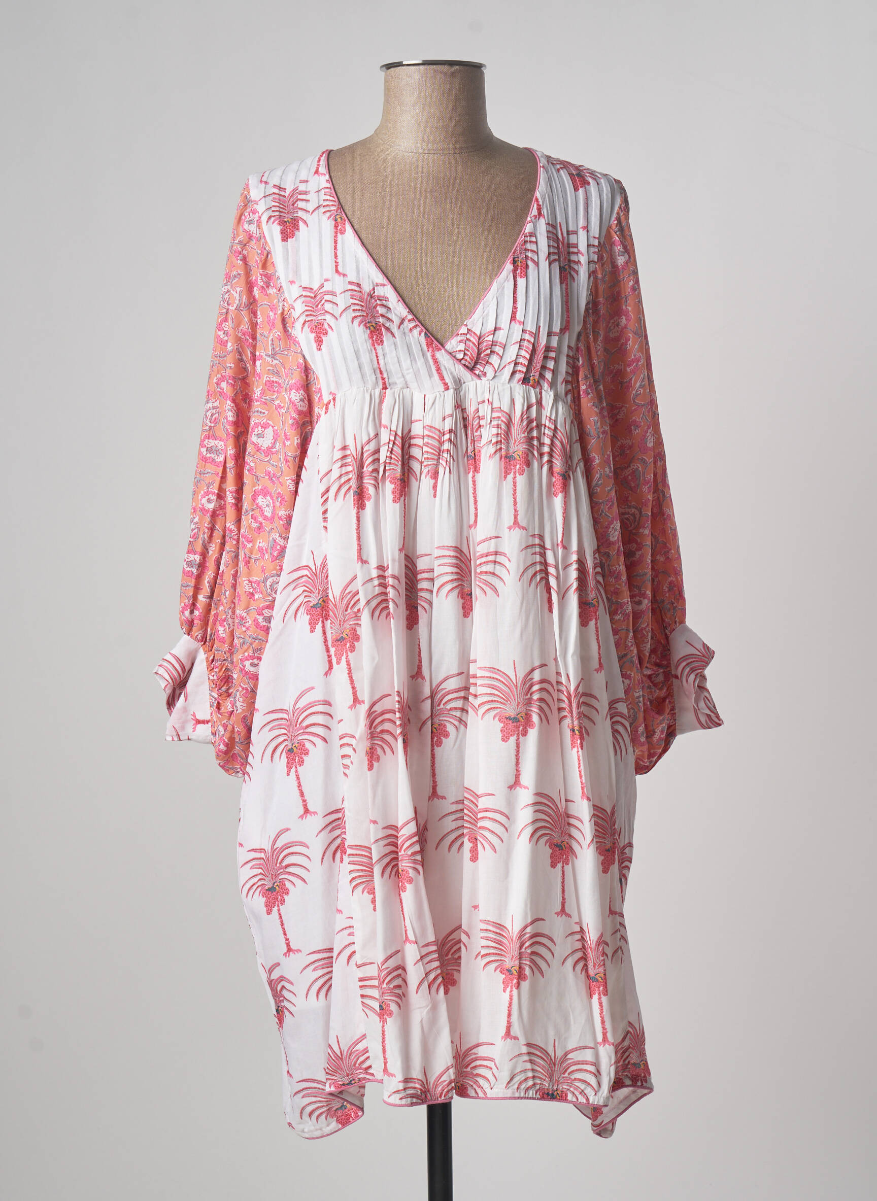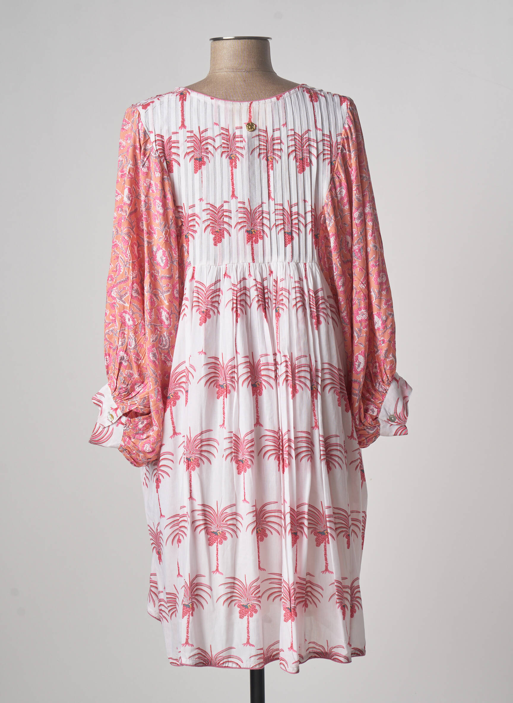 Rochie Scurtă Place Du Soleil Roz Mâneci Lungi