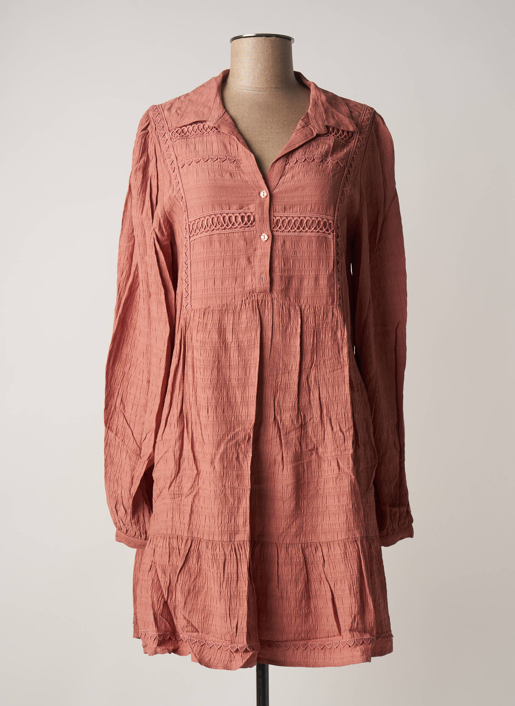 Rochie Scurtă Salsa Roz Mâneci Lungi