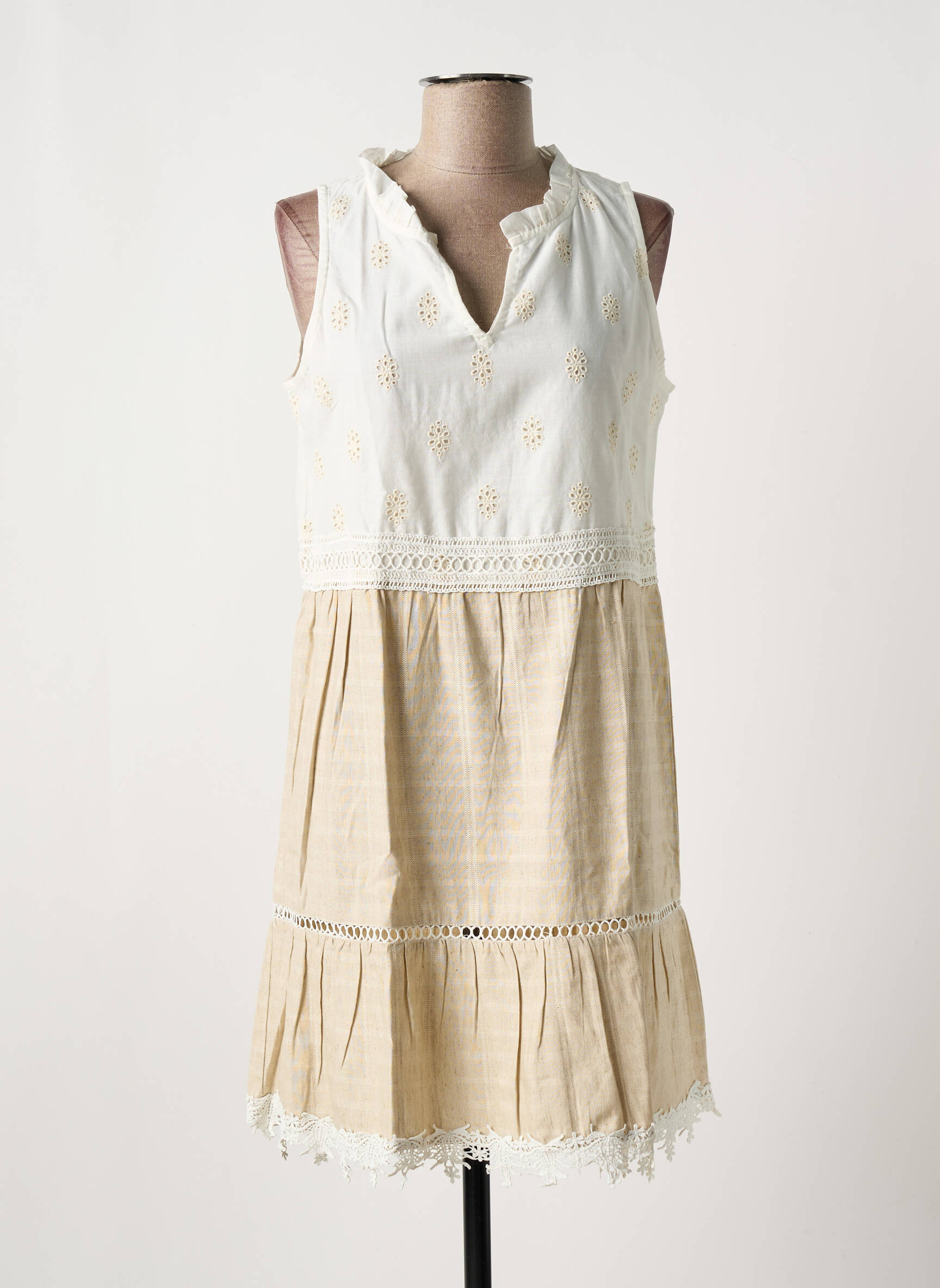 Rochie Scurtă Senoretta Bej Fără Mâneci