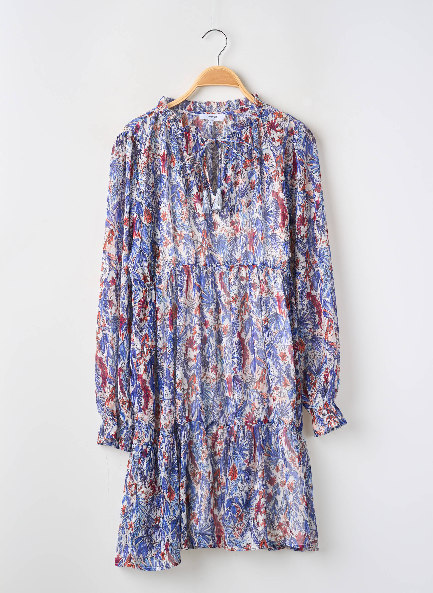 Rochie Scurtă Suncoo Albastru Mâneci Lungi