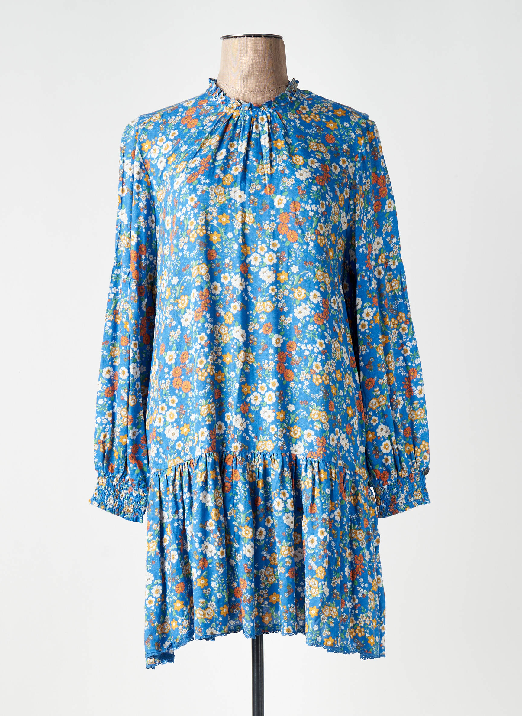 Rochie Scurtă Superdry Albastru Mâneci Lungi