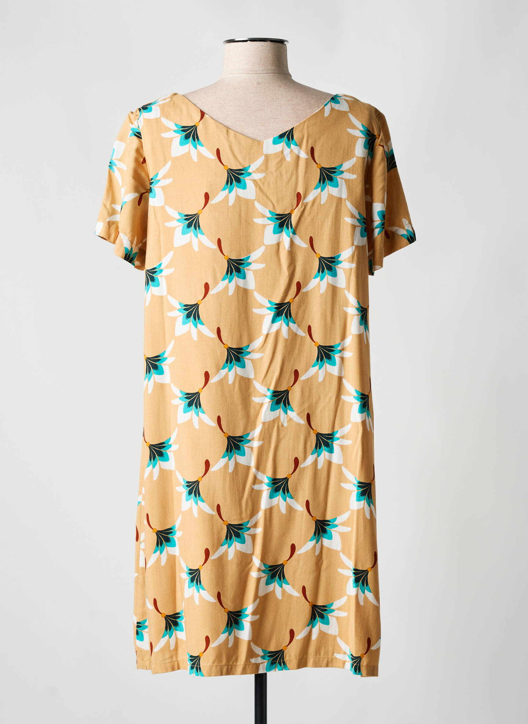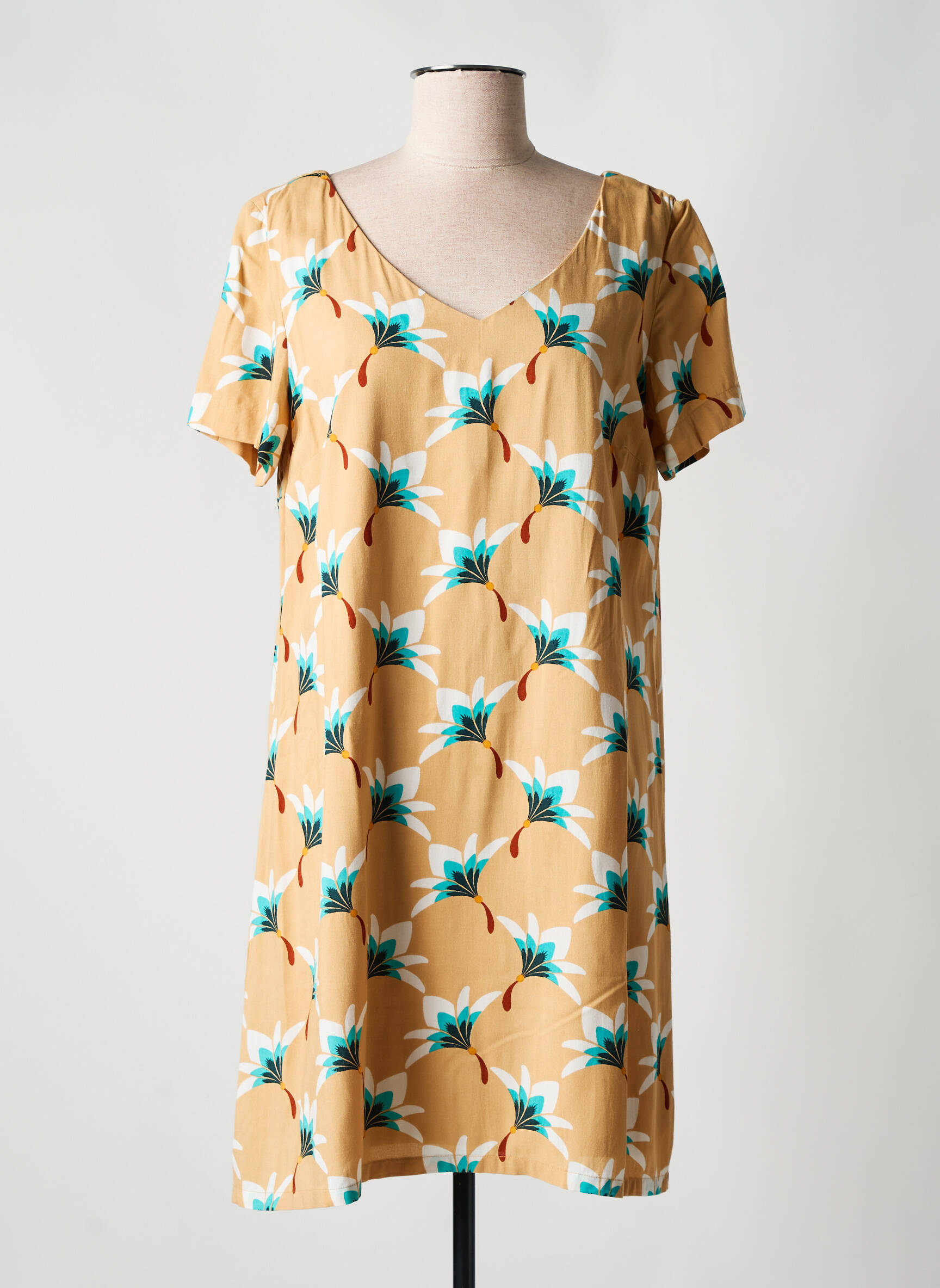 Rochie Scurtă Surkana Bej Mâneci Scurte