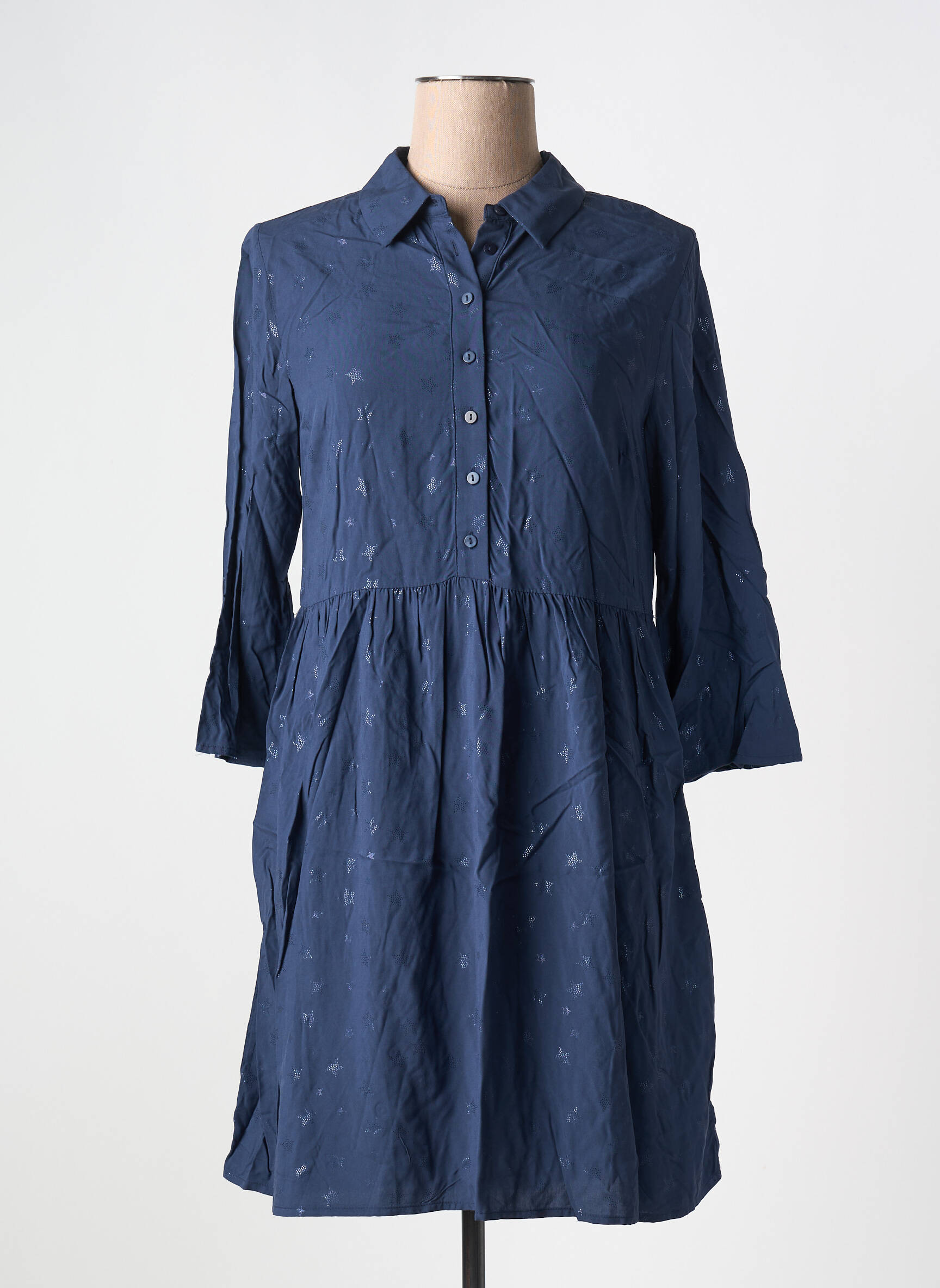 Rochie Scurtă Vila Albastru Mâneci Lungi