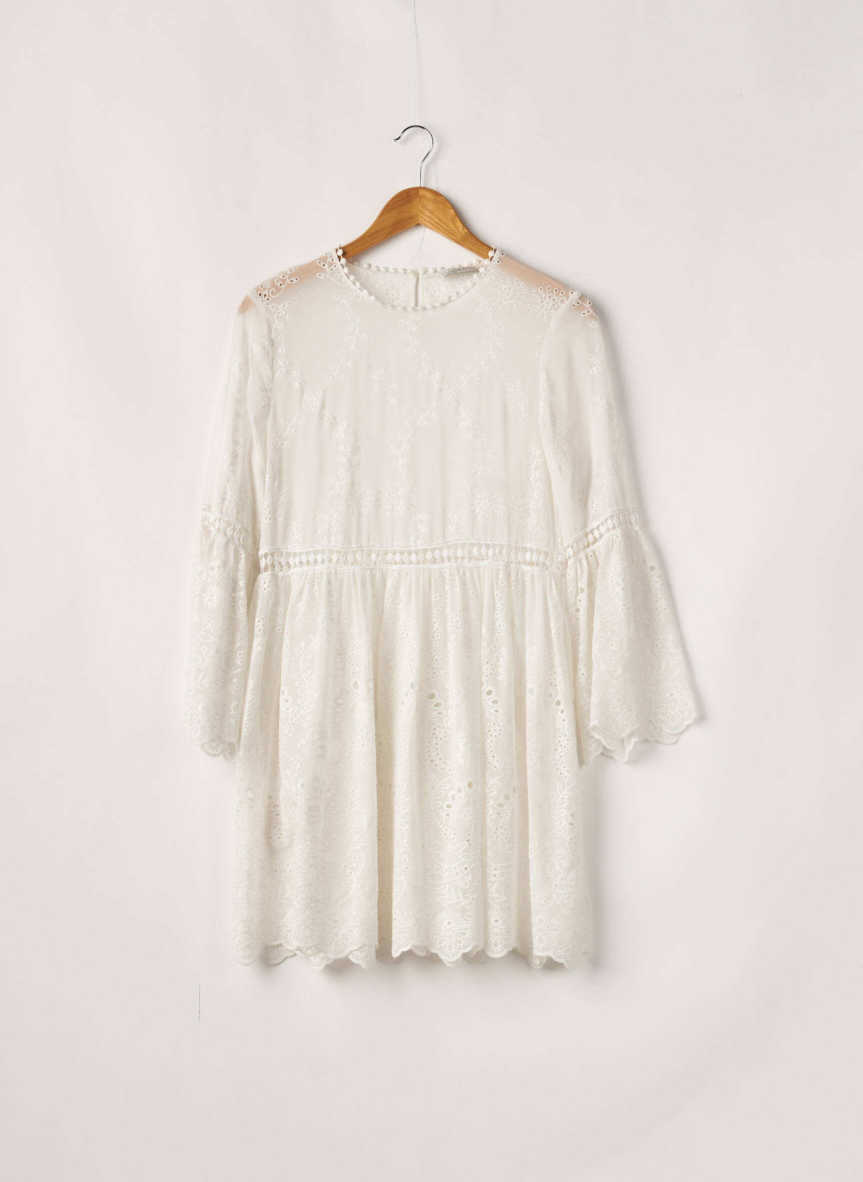 Rochie Scurtă Zara Alb Mâneci Lungi