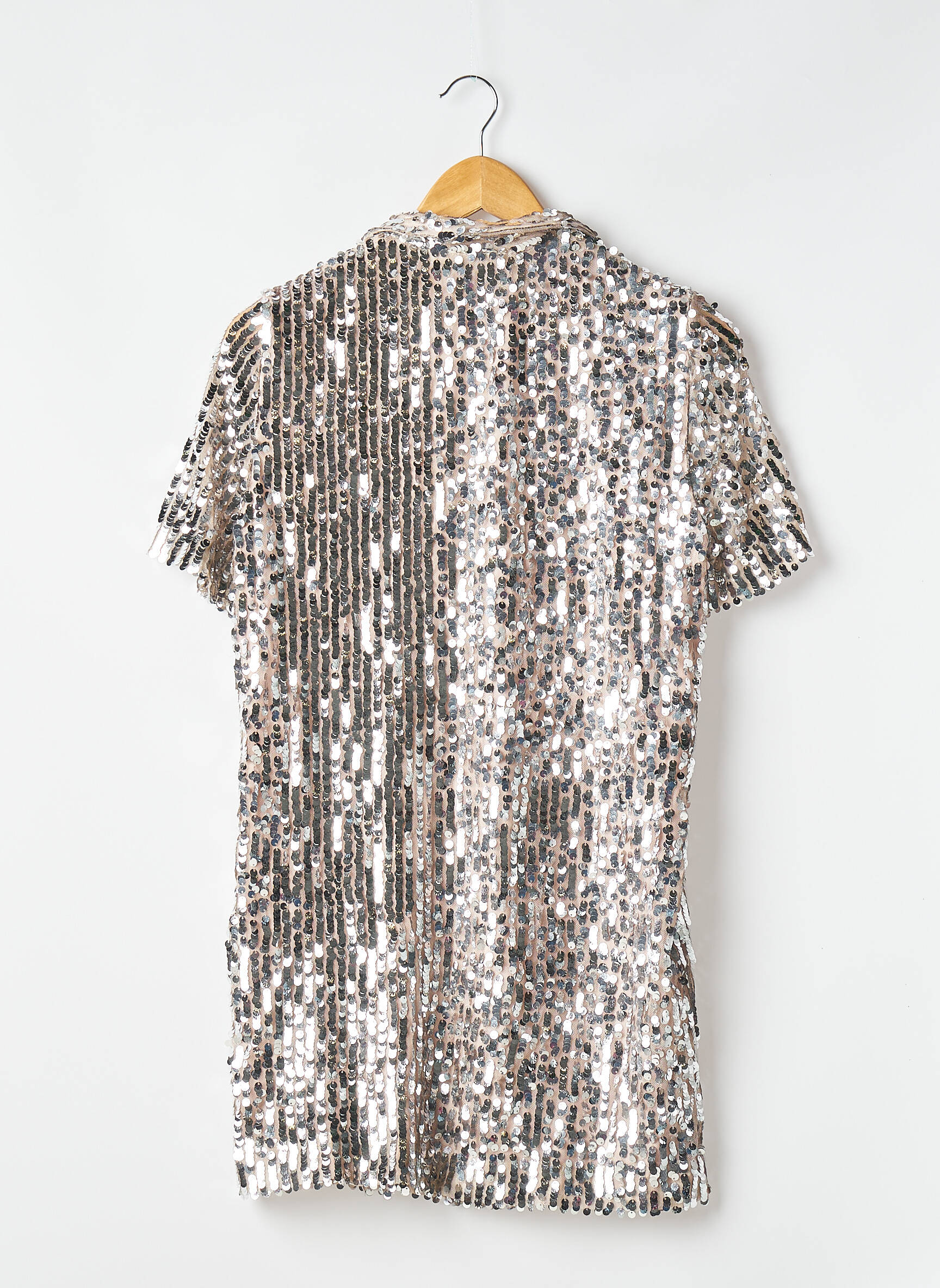 Rochie Scurtă Zara Argintiu Mâneci Scurte