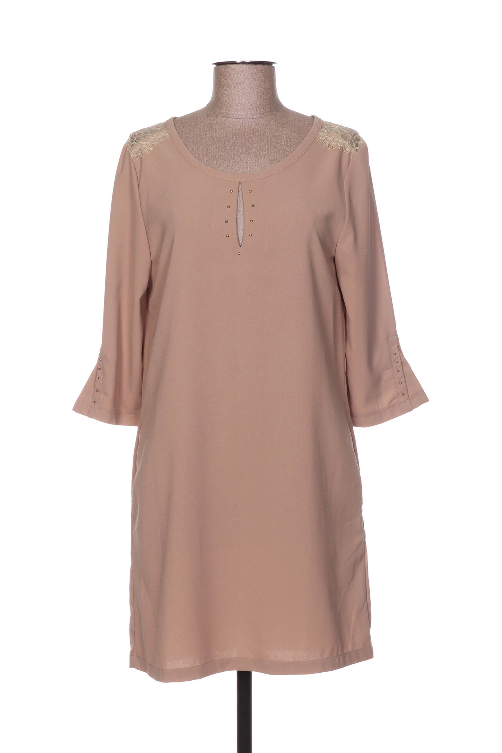 Rochie Scurtă Zepeline Bej Mâneci 3/4