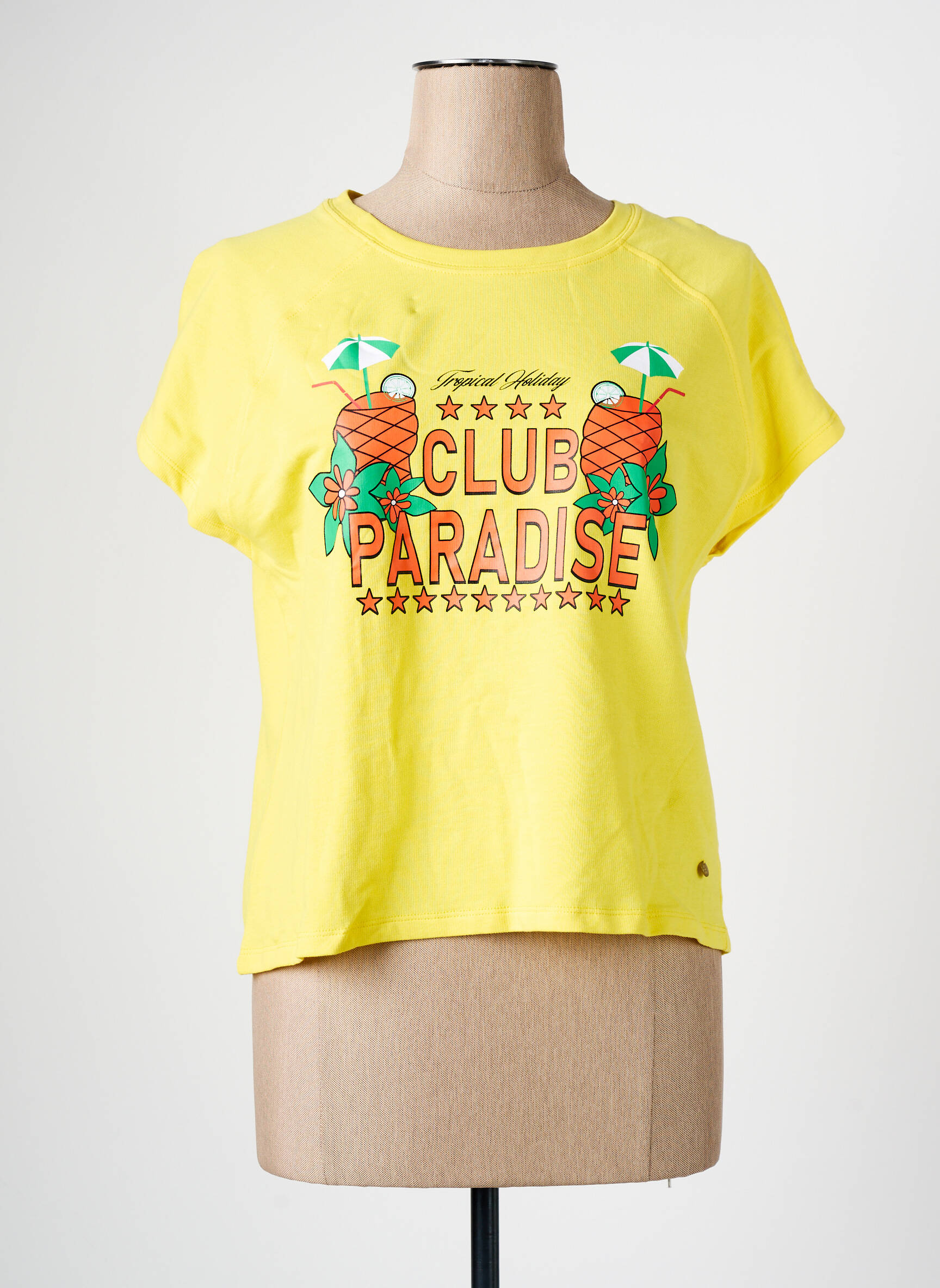 Tricou C'est Beau La Vie Galben Mâneci Scurte